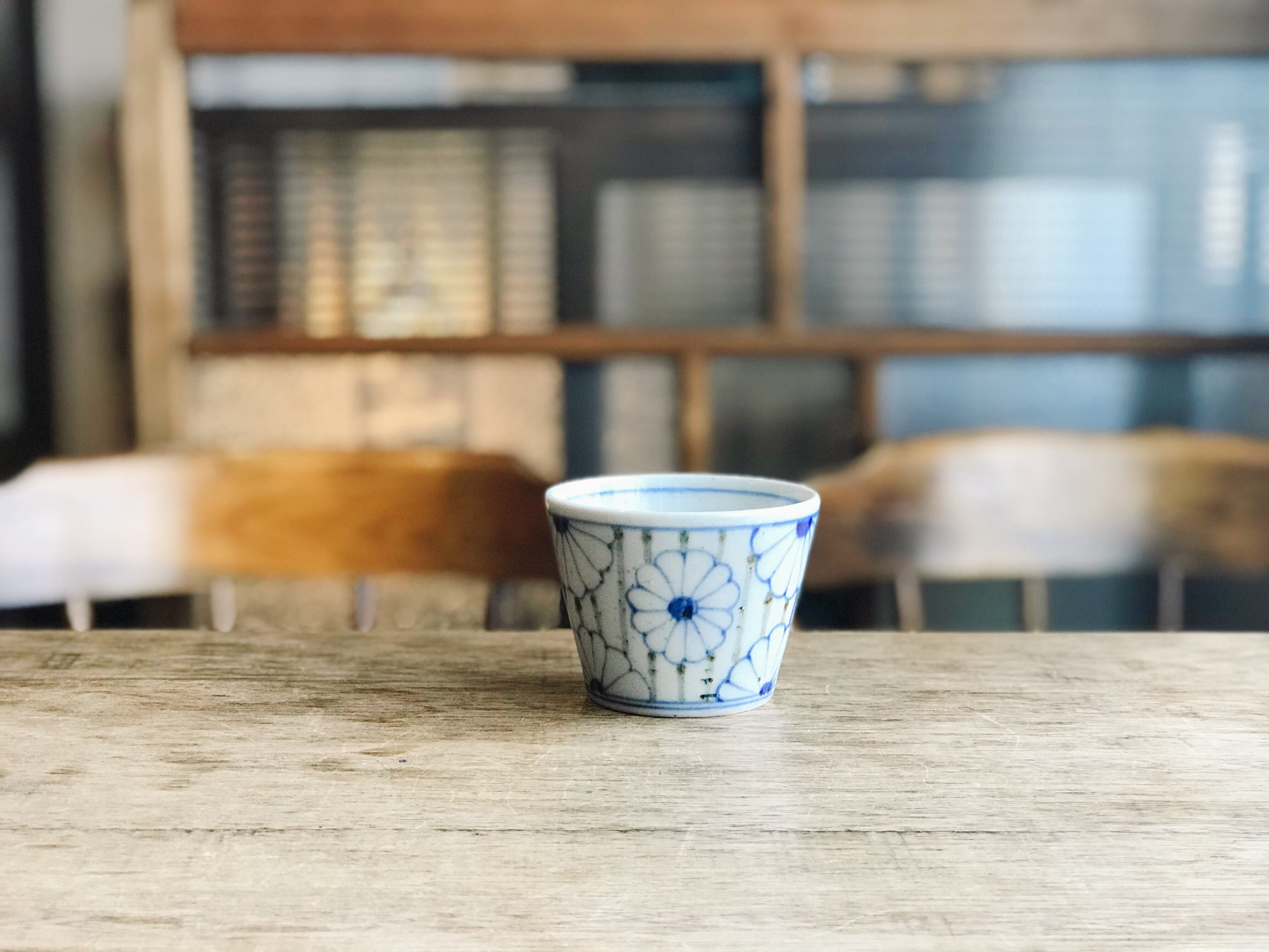 砥部焼/中田窯/そば猪口(ブルー/お花)①