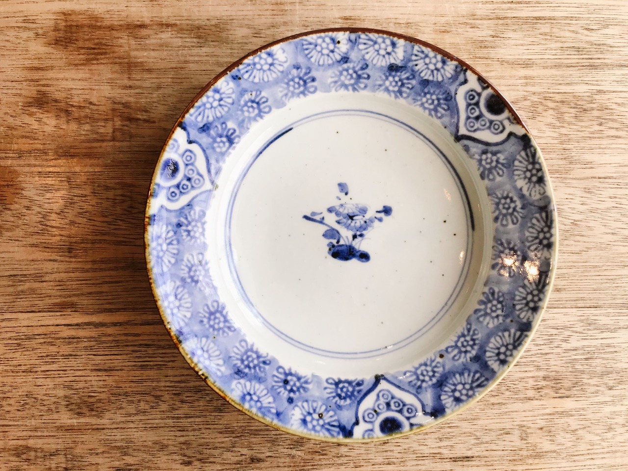 砥部焼/中田窯/6寸リム皿(ブルー/菊文)②