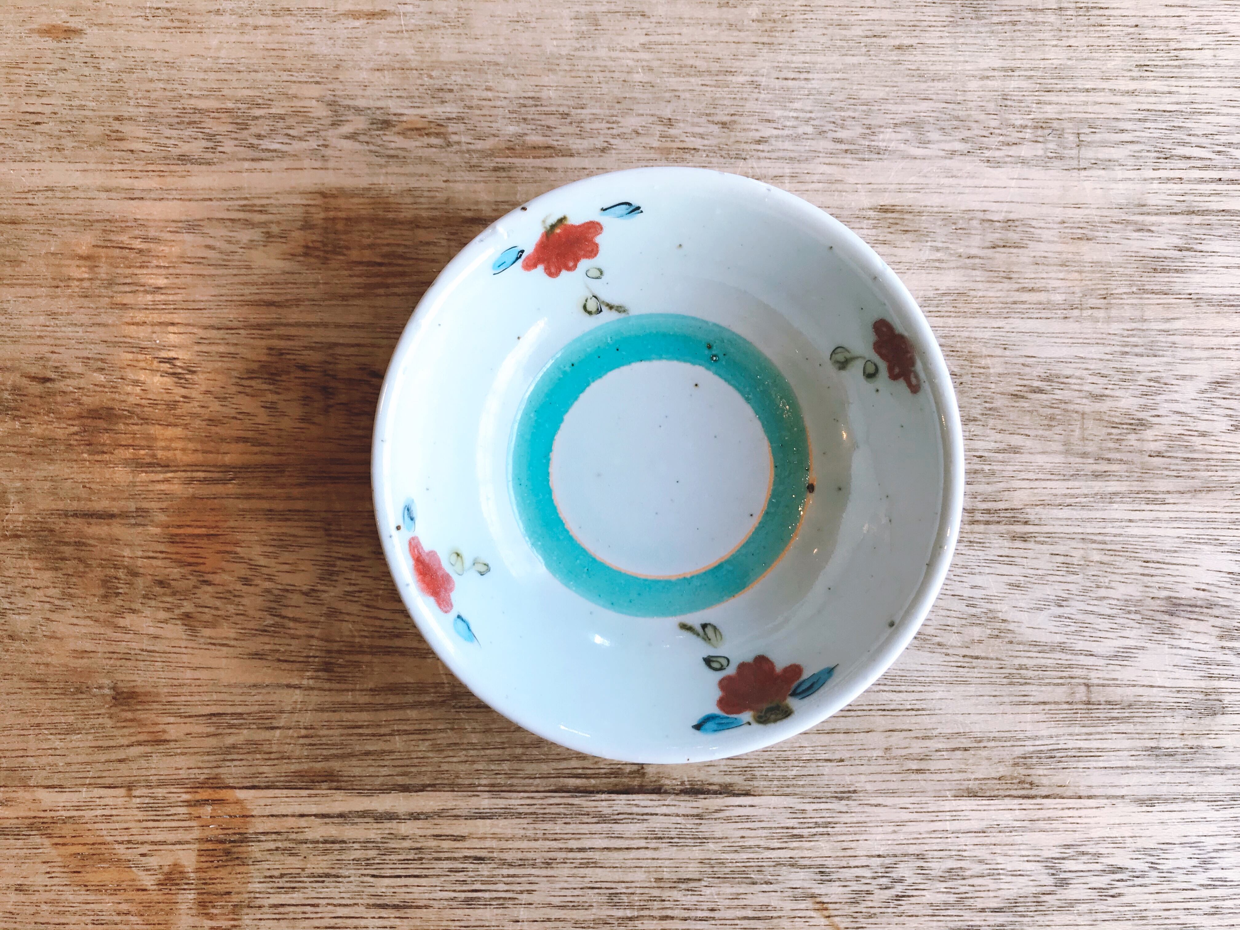 砥部焼/中田窯/4寸鉢(釉裏紅)緑①
