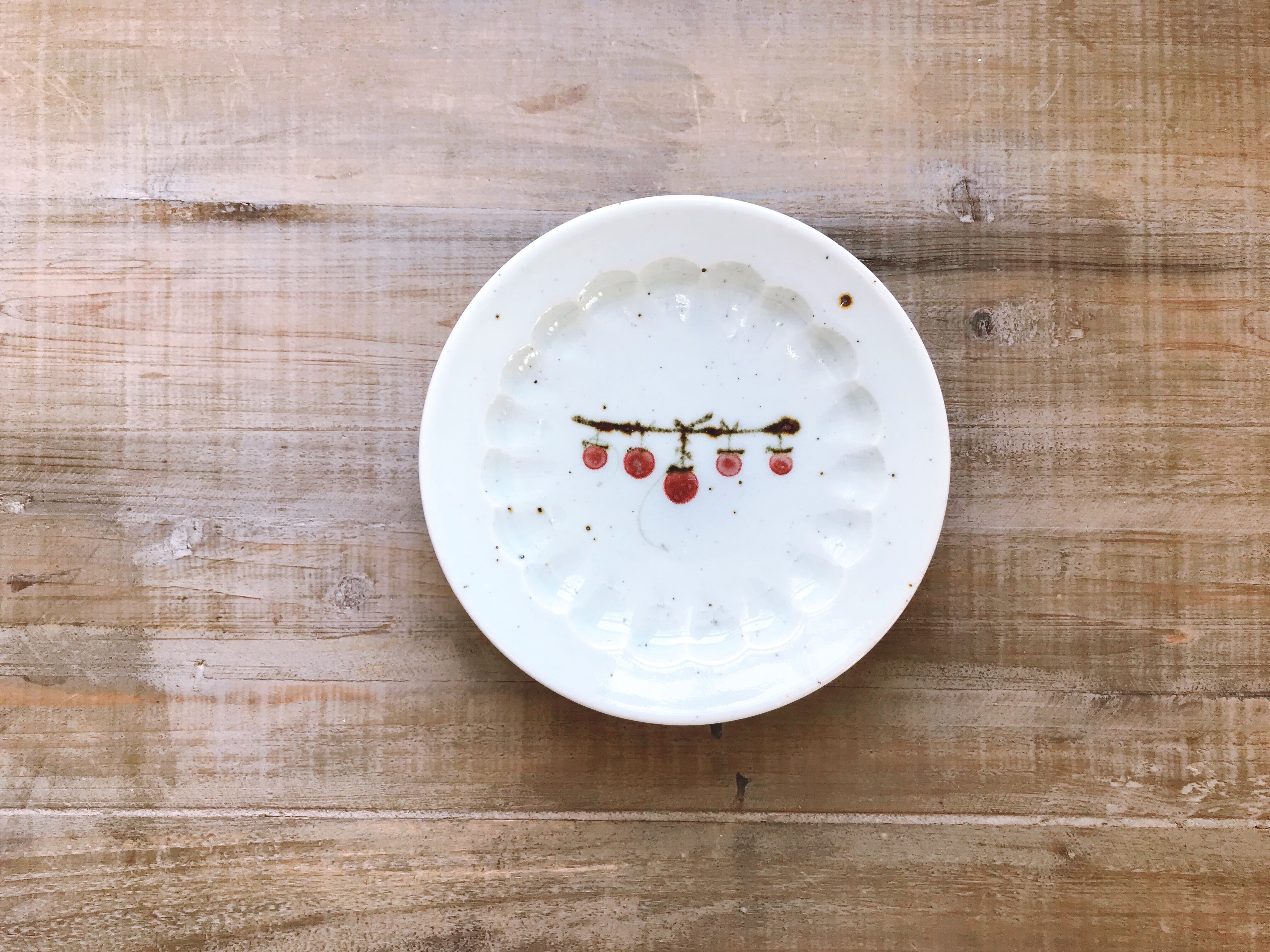 砥部焼/中田窯/5寸リム皿(釉裏紅/鎬)吊るし柿⑤