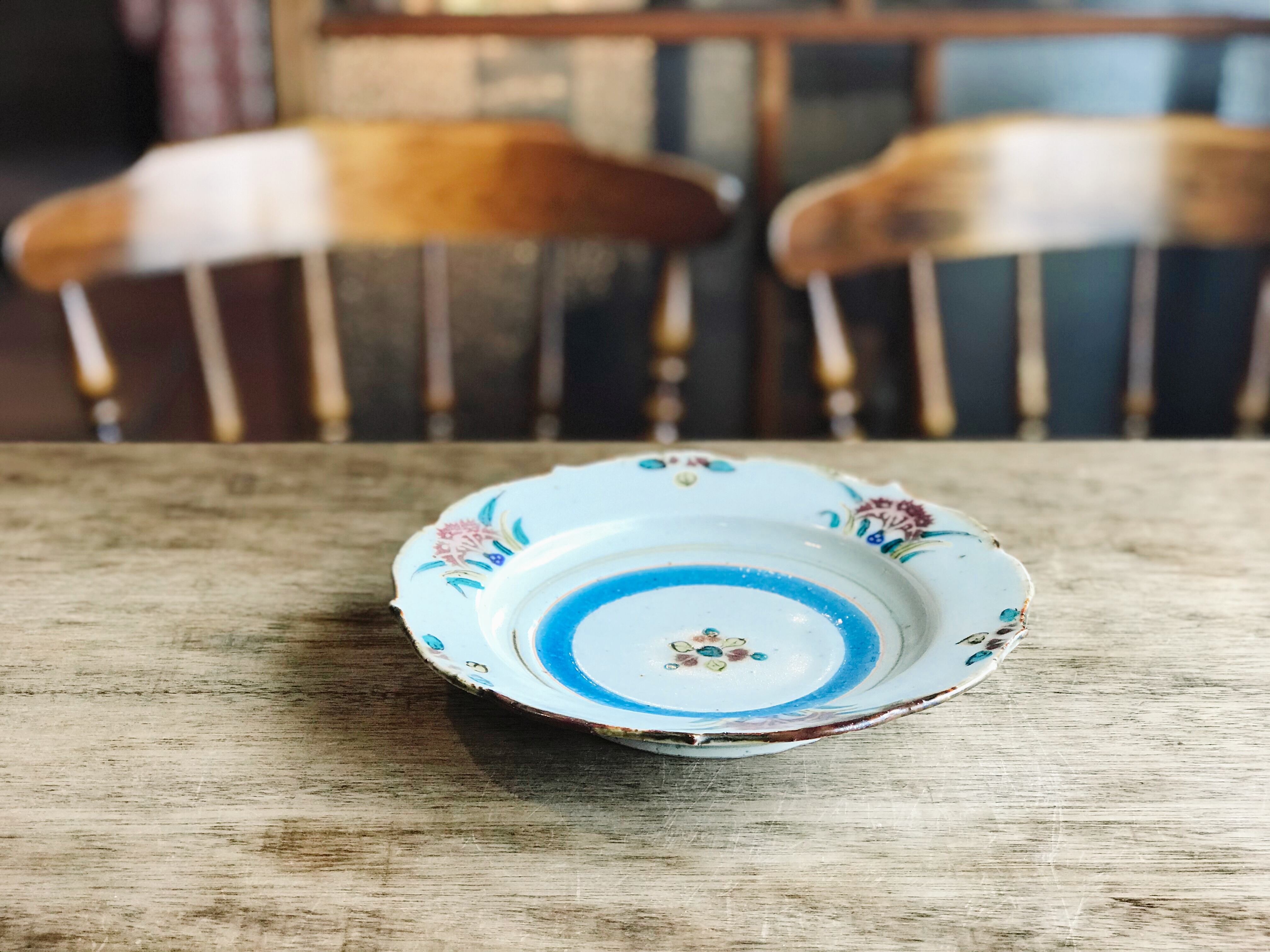 砥部焼/中田窯/7寸リム皿(釉裏紅)/輪花・加彩(ブルー)①