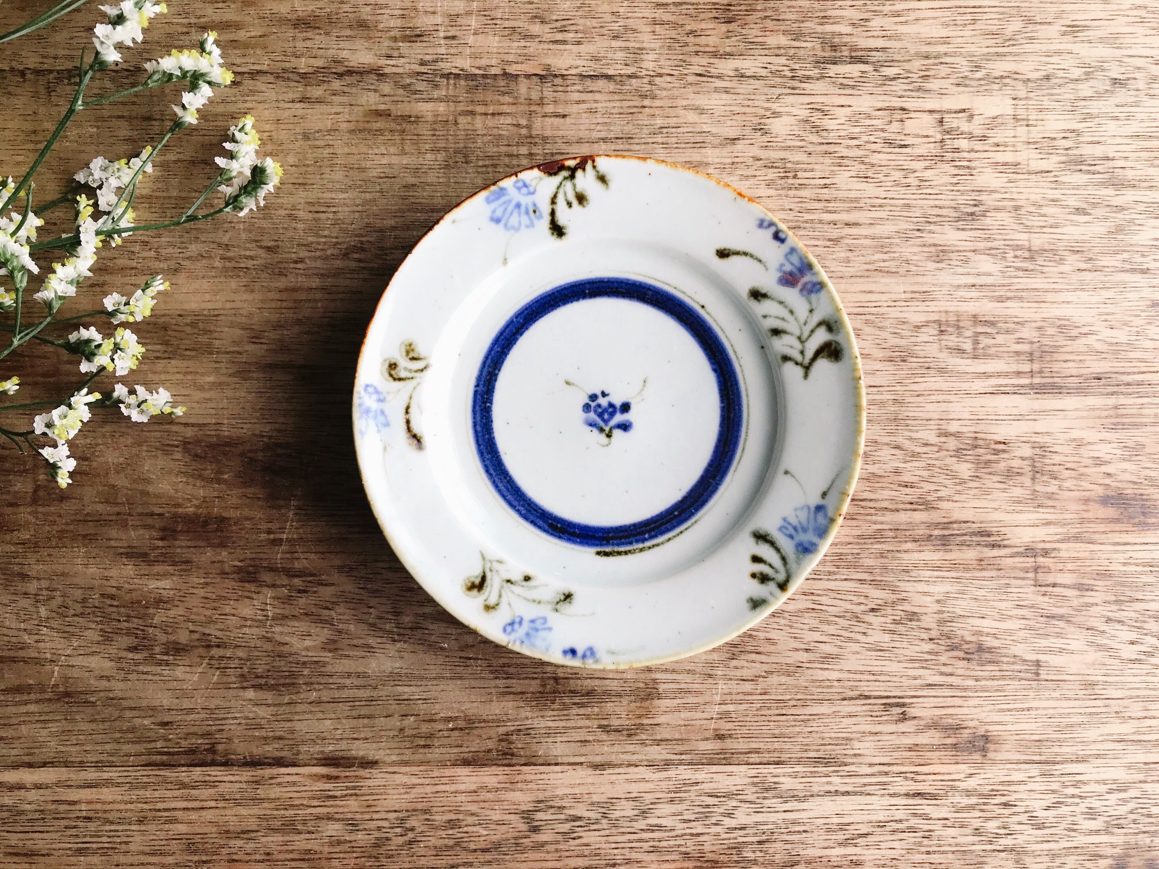砥部焼/中田窯/5寸リム皿(呉須鉄草花文)②