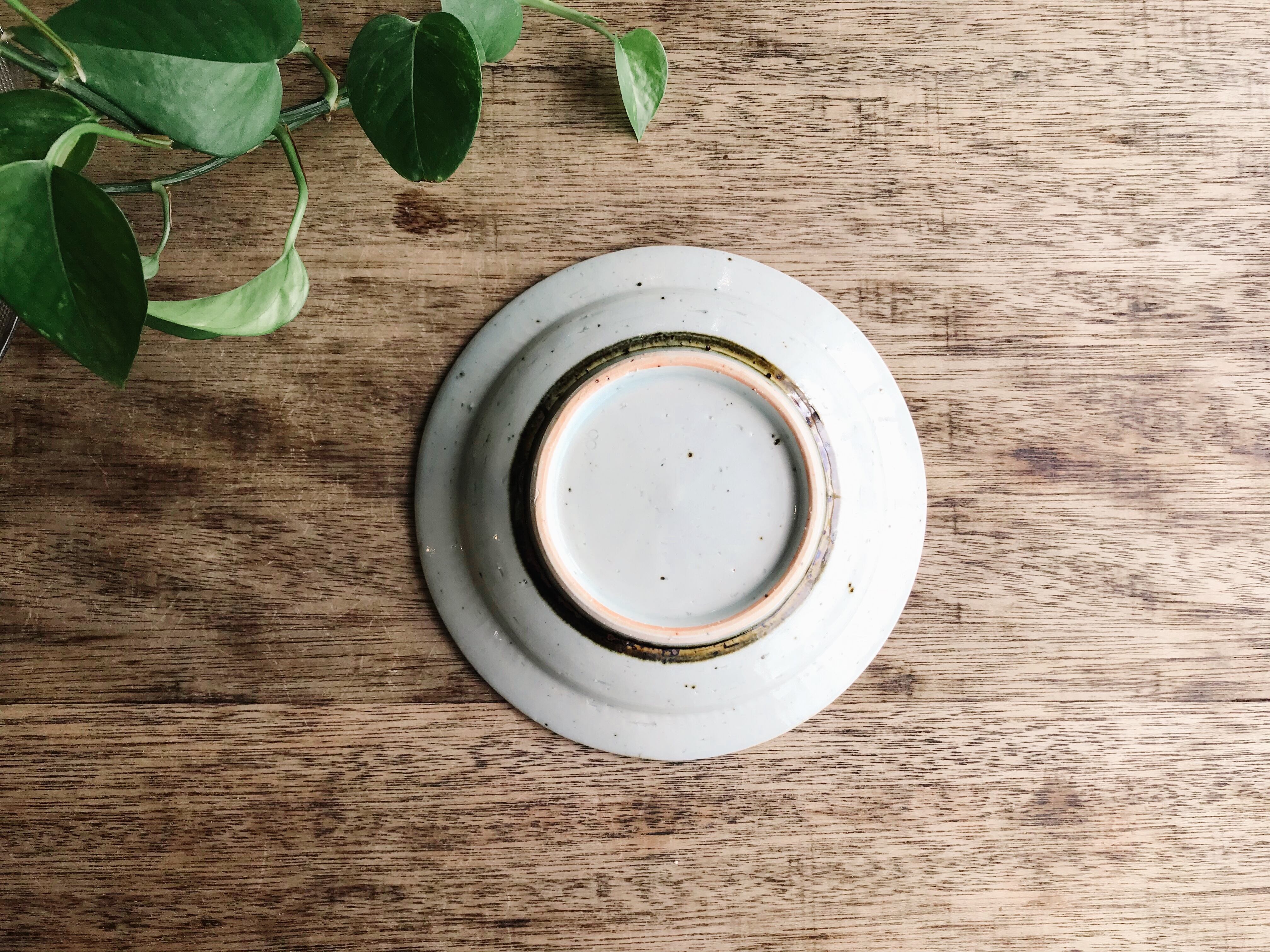 砥部焼/中田窯/6寸リム皿(釉裏紅加彩/緑)②