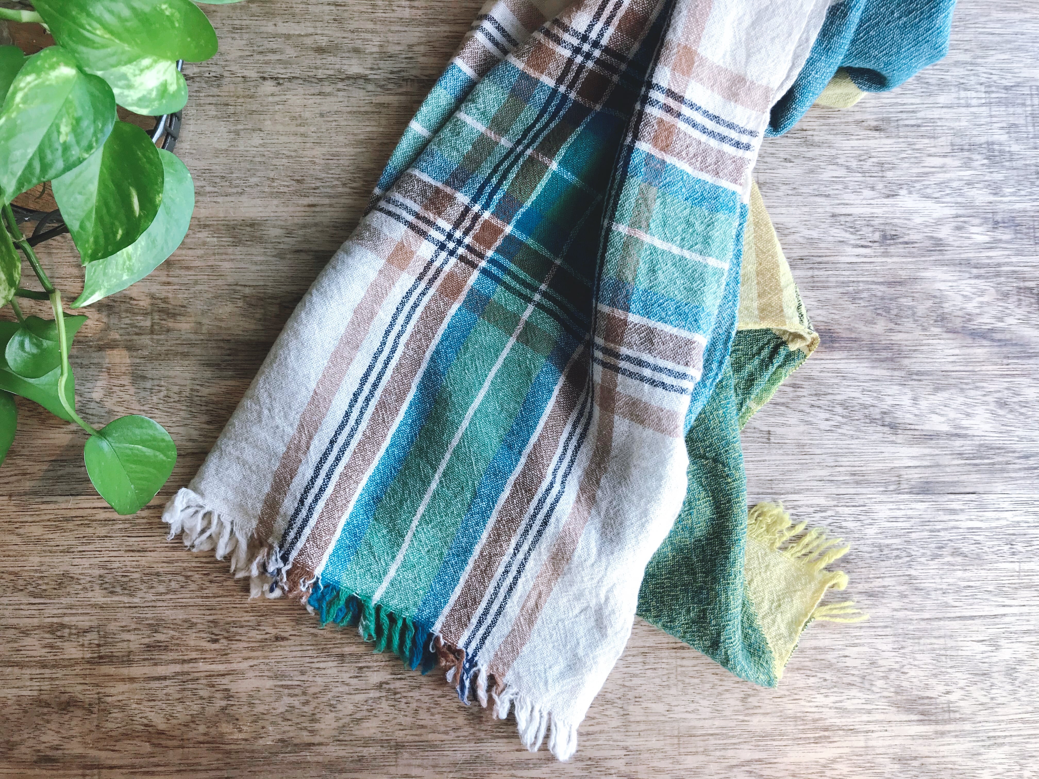 カシミヤに匹敵する細番手のウールを使用した、多色使いのチェックストールです。