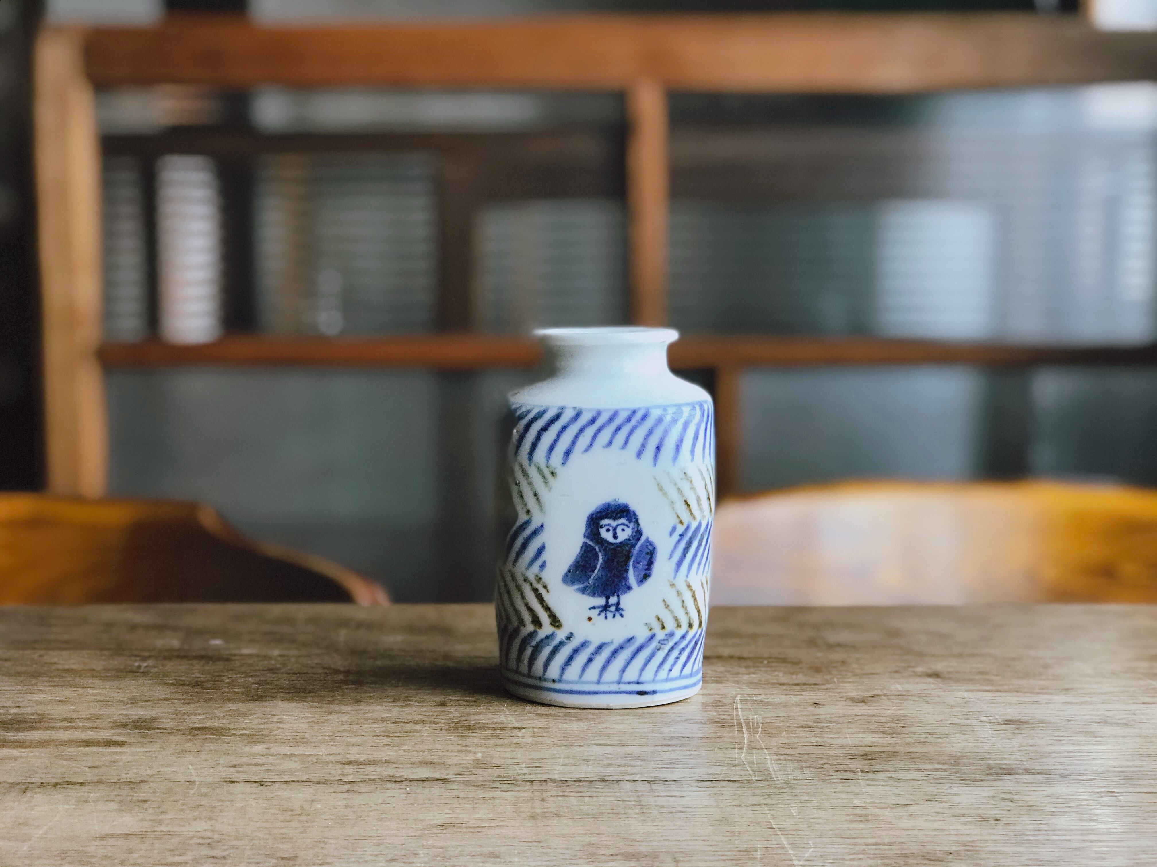 砥部焼/皐月窯/四角古瓶型花瓶(動物)