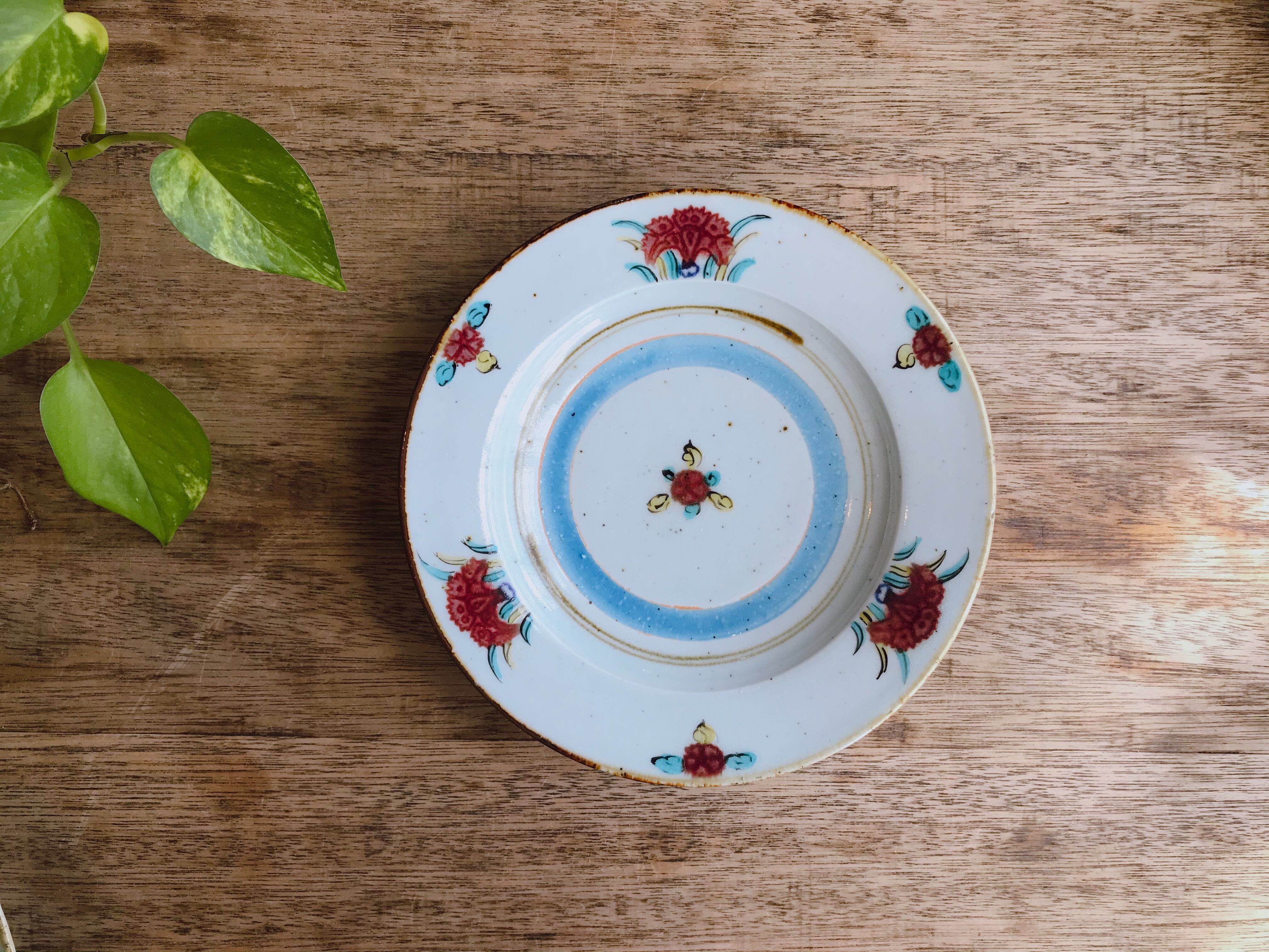 砥部焼/中田窯/7寸リム皿(釉裏紅加彩/ブルー)