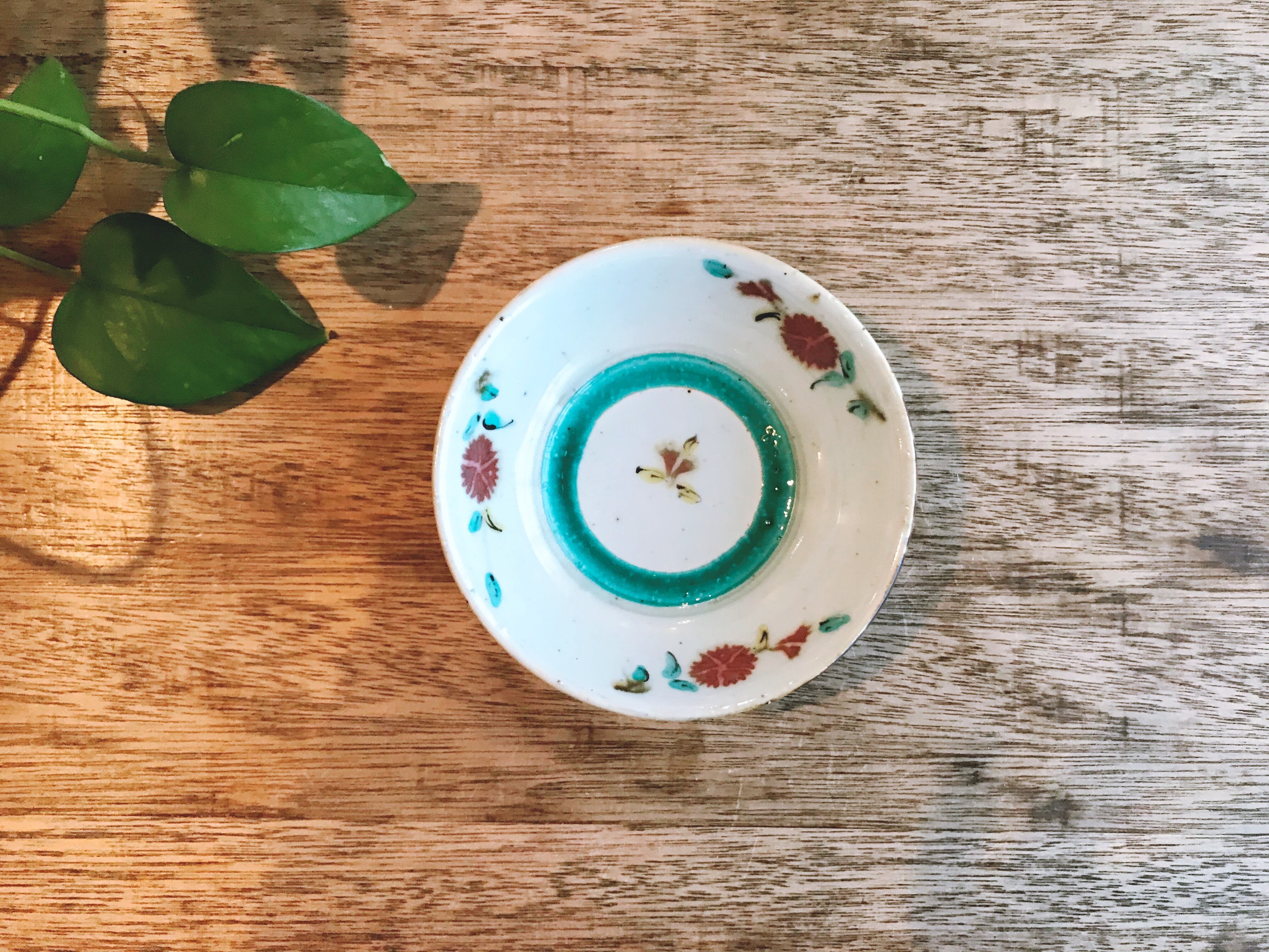 砥部焼/中田窯/4寸鉢(釉裏紅加彩/緑)①