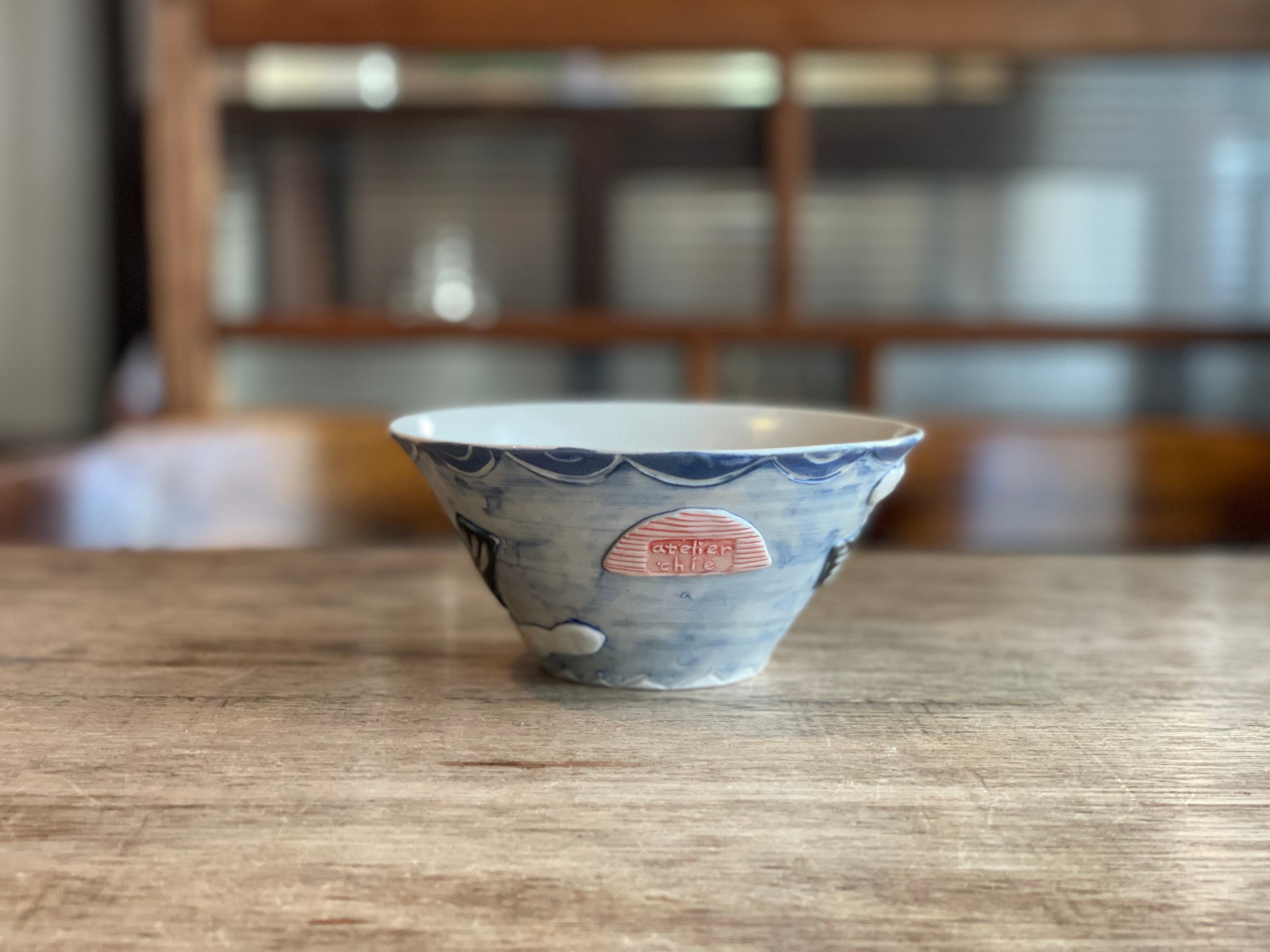 砥部焼/atelier chie/茶碗(富士山と八鶴)