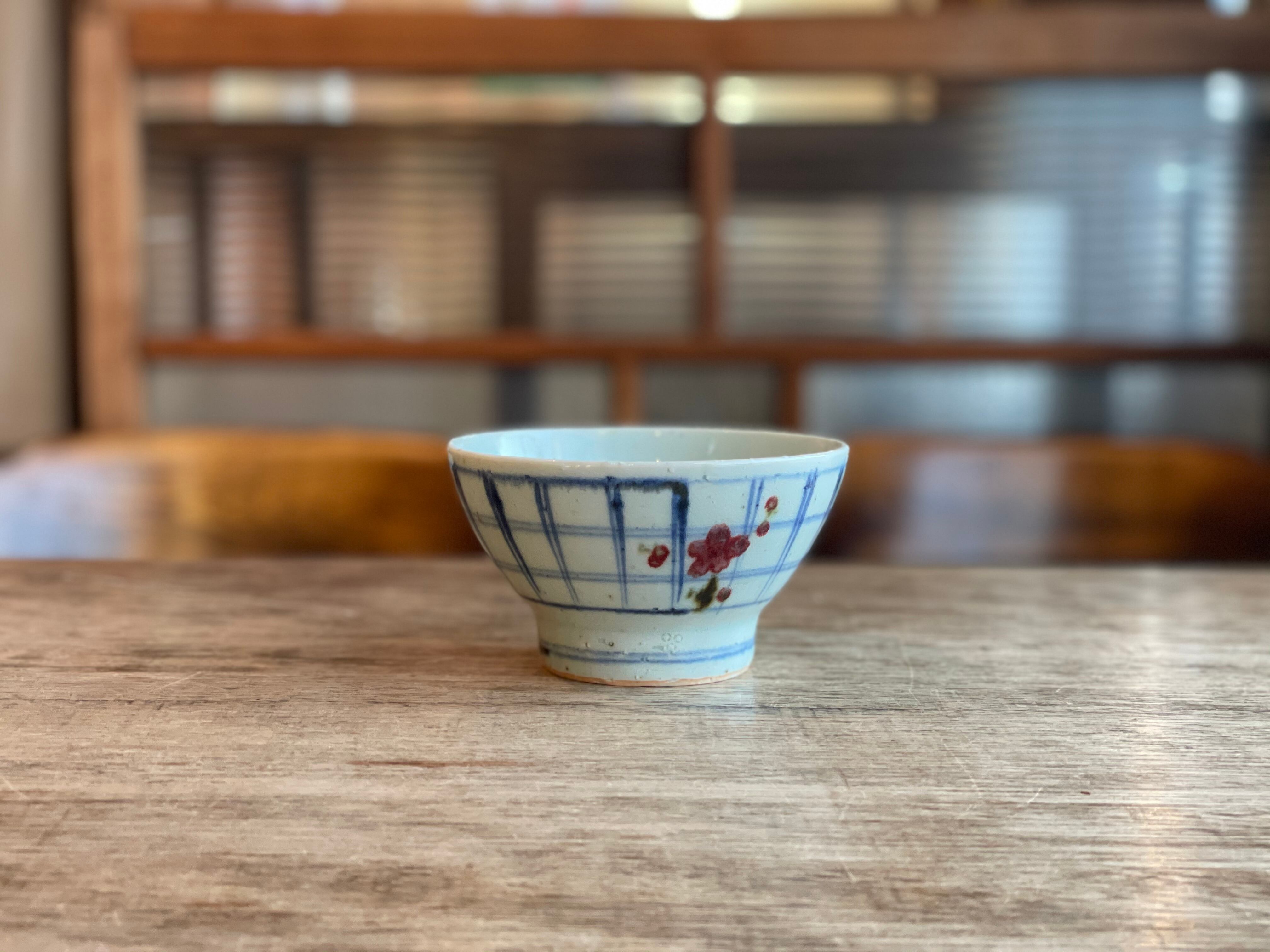 砥部焼/中田窯/くらわんか茶碗(格子・梅)