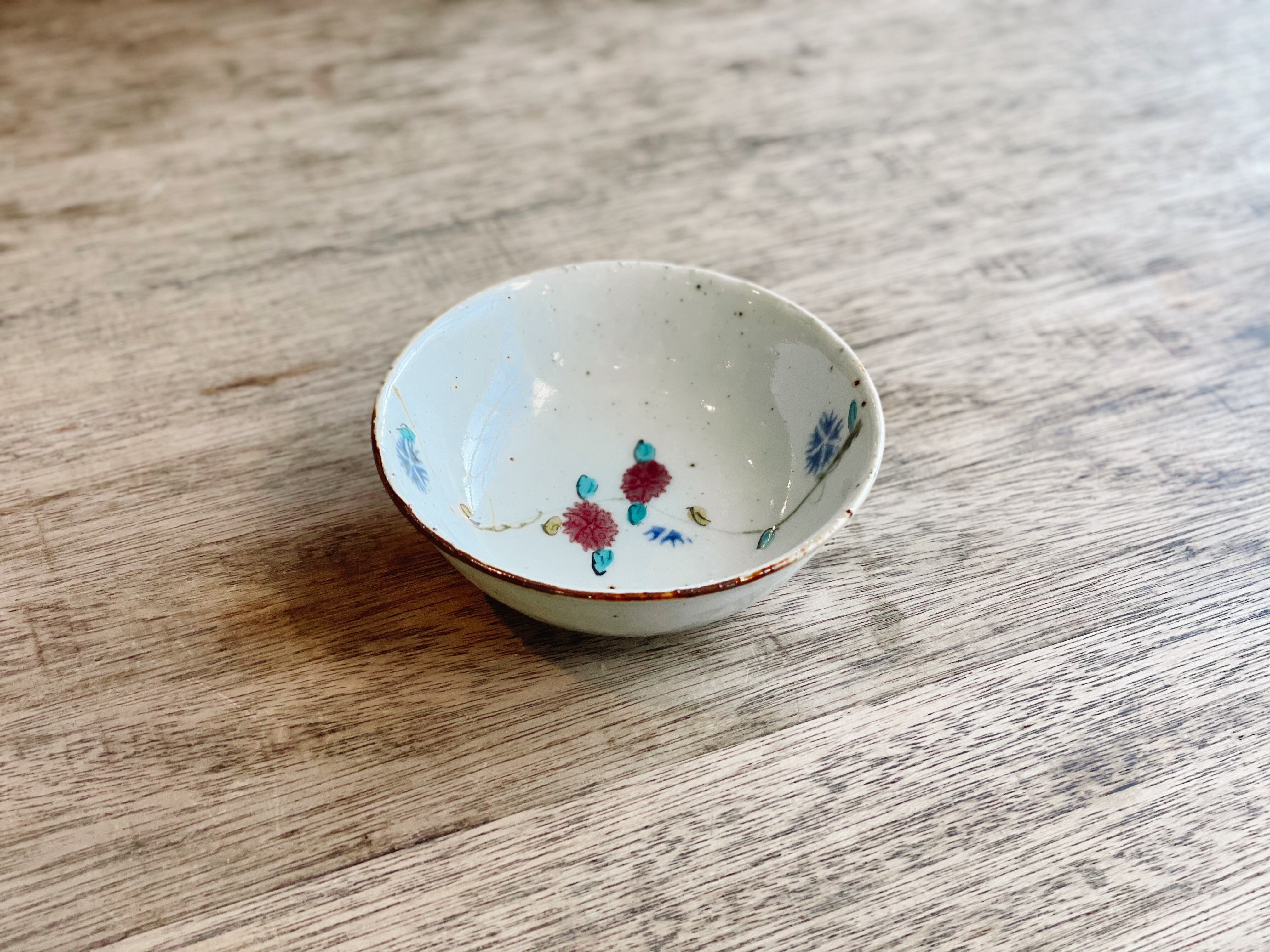砥部焼/中田窯/4寸鉢(釉裏紅加彩)①