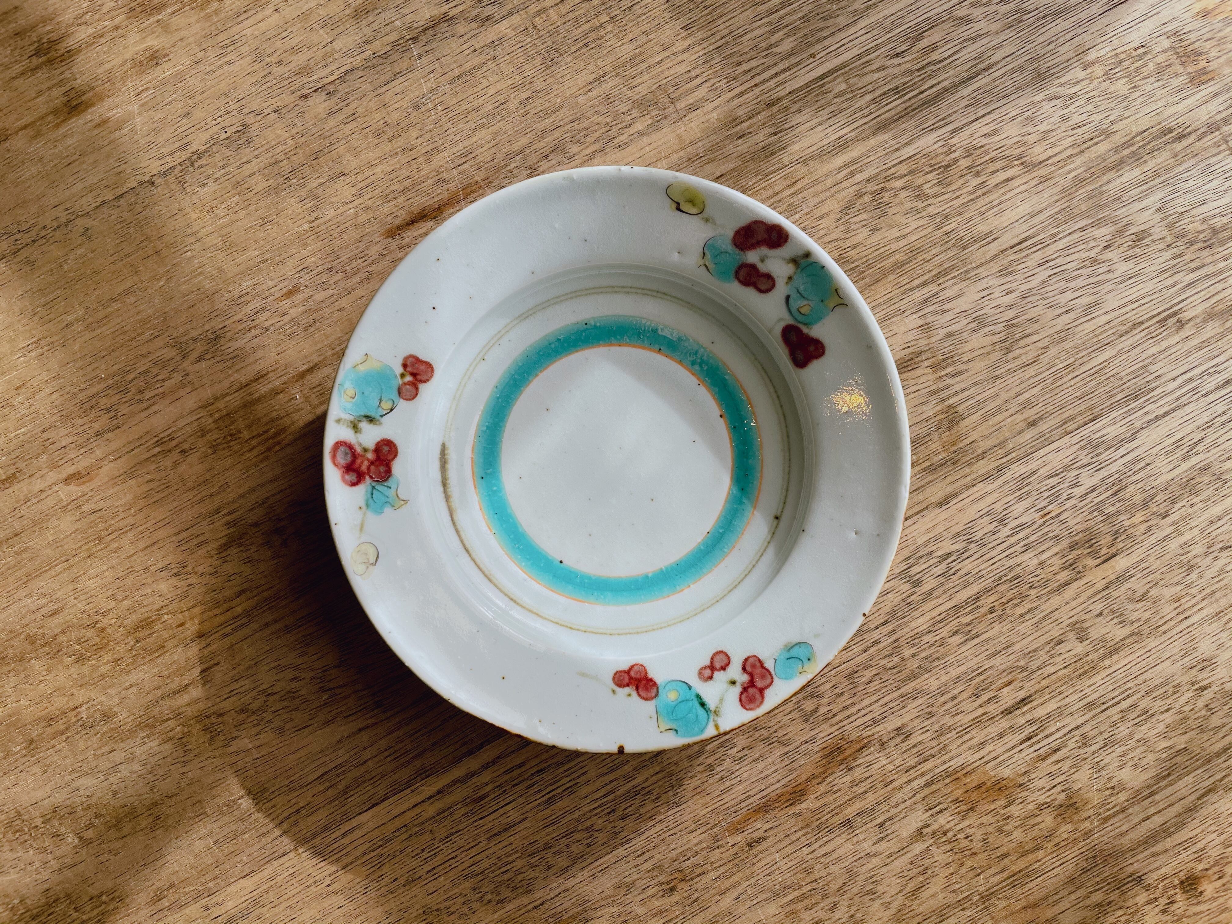 砥部焼/中田窯/6寸リム皿(釉裏紅加彩/緑)②