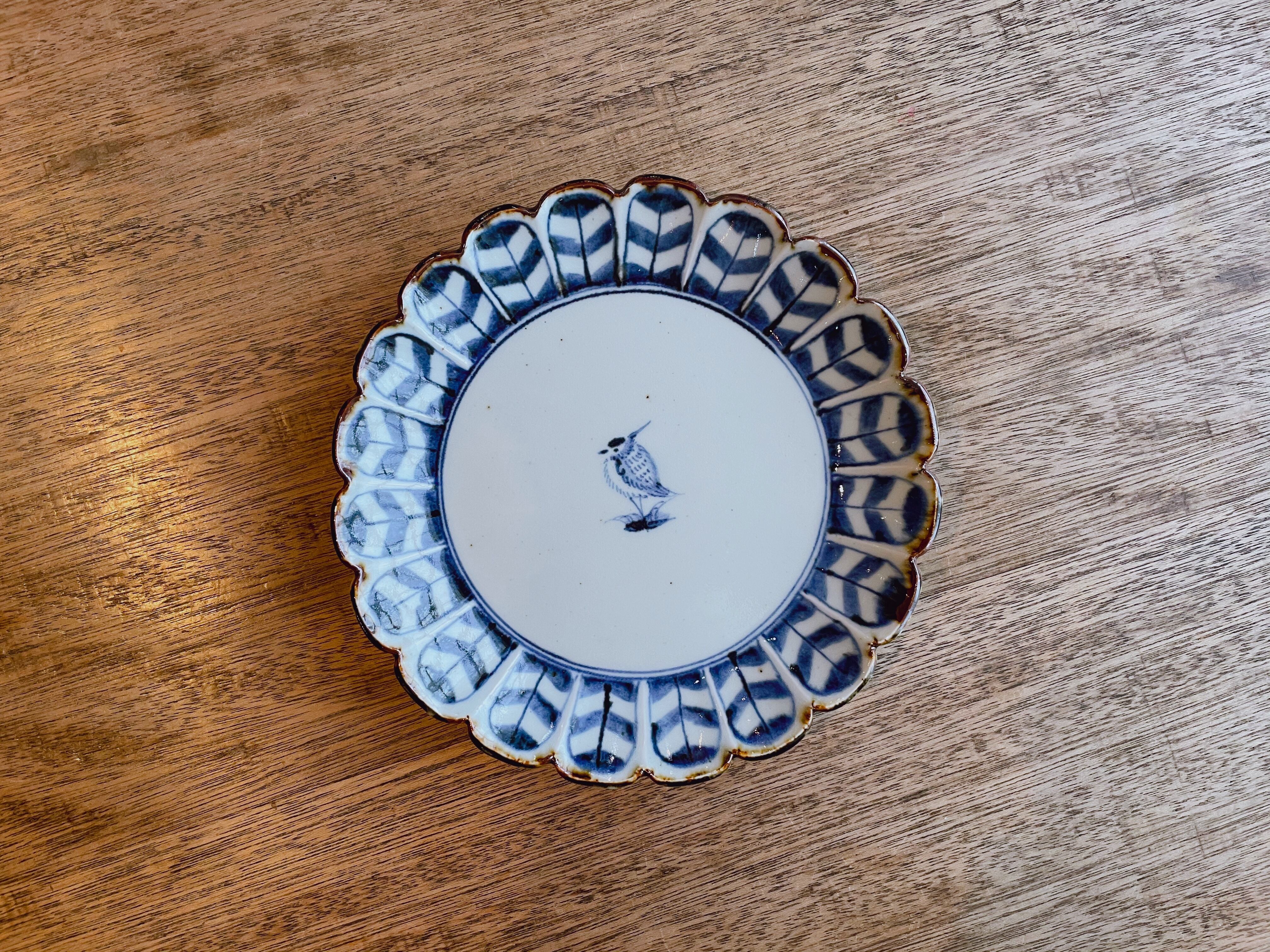 砥部焼/中田窯/8寸型打皿(矢羽/鳥)