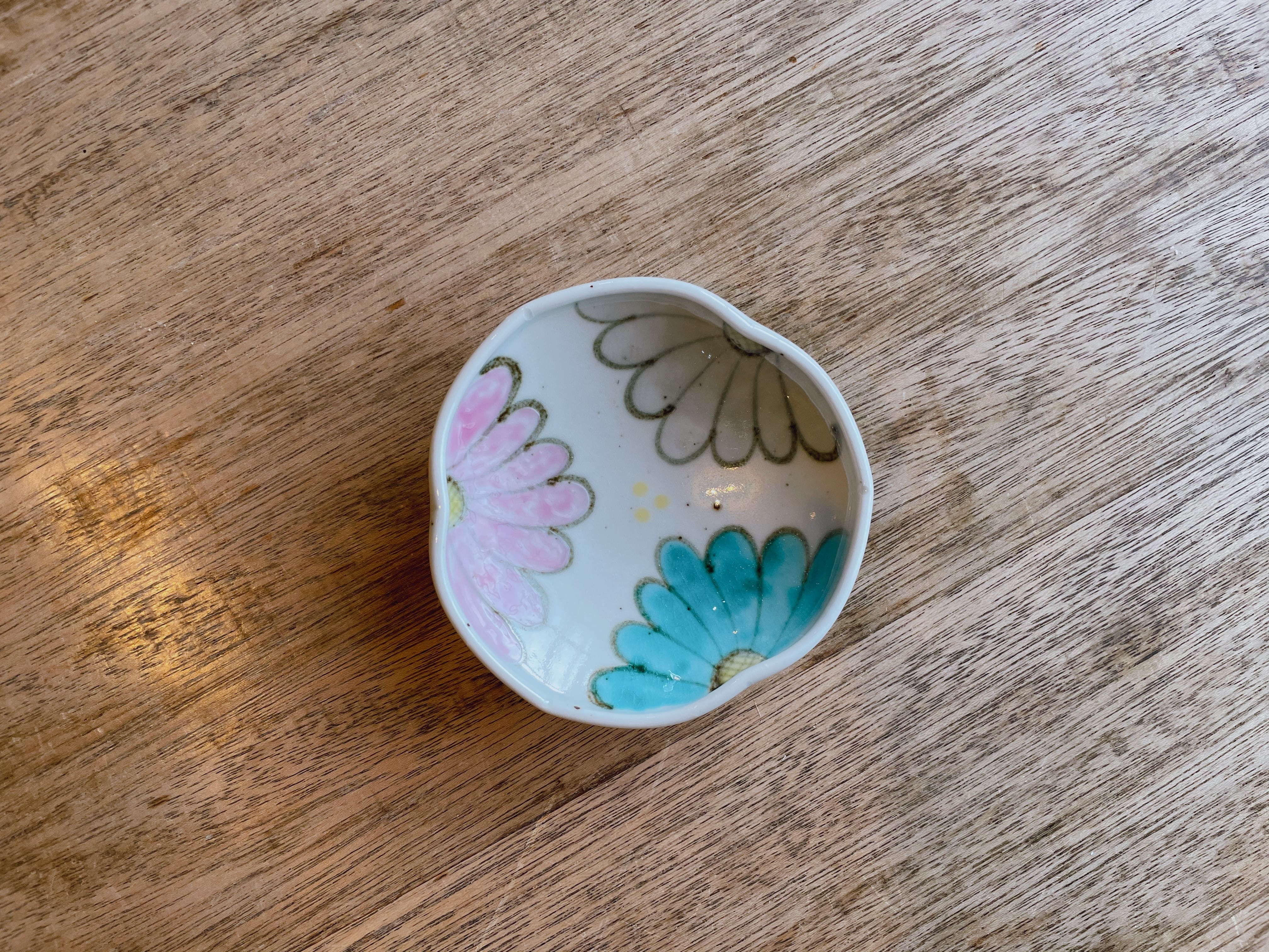 砥部焼/皐月窯/4寸玉縁輪花皿(菊三種)