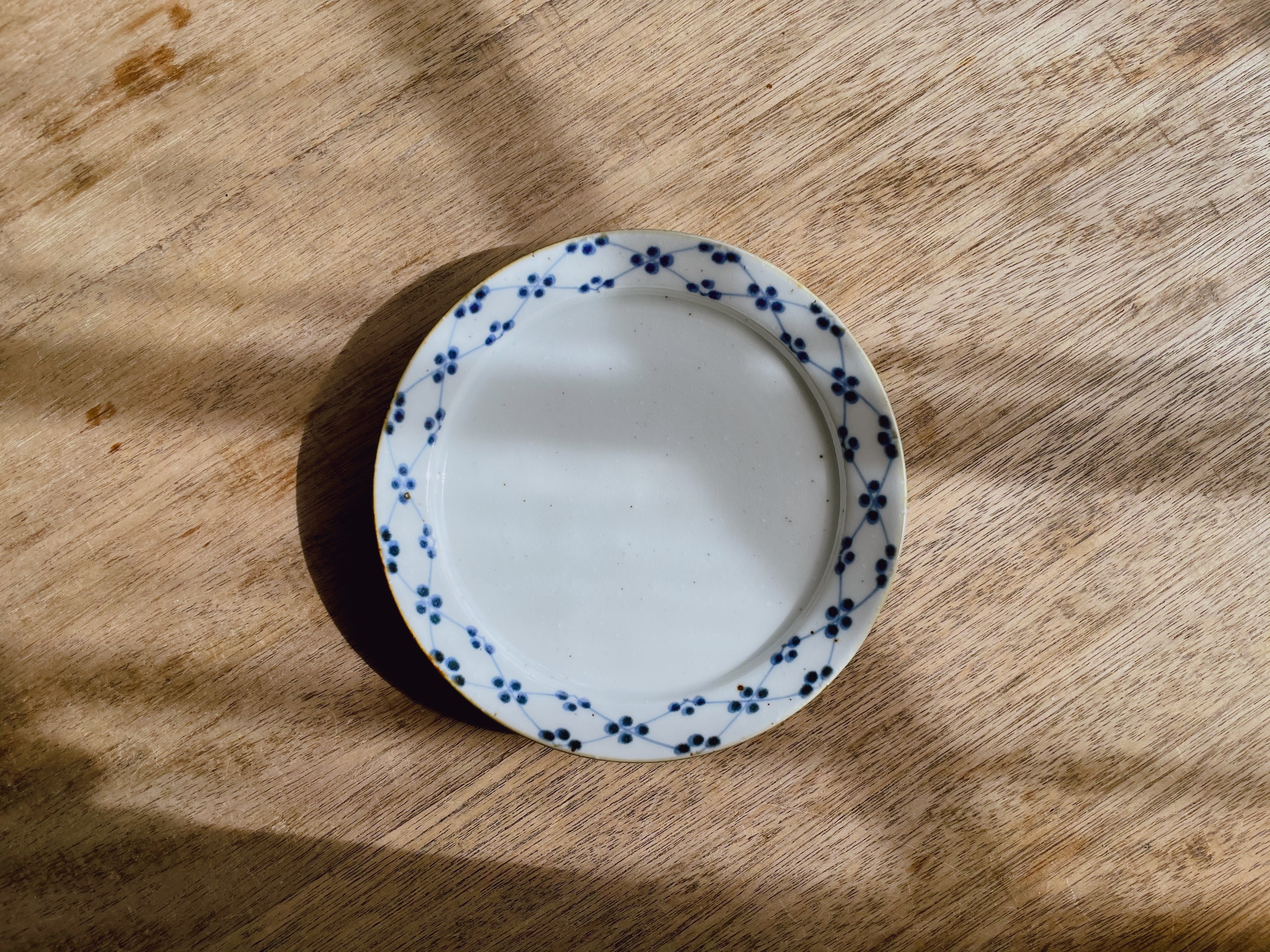 砥部焼/皐月窯/6寸リム皿(梅文)