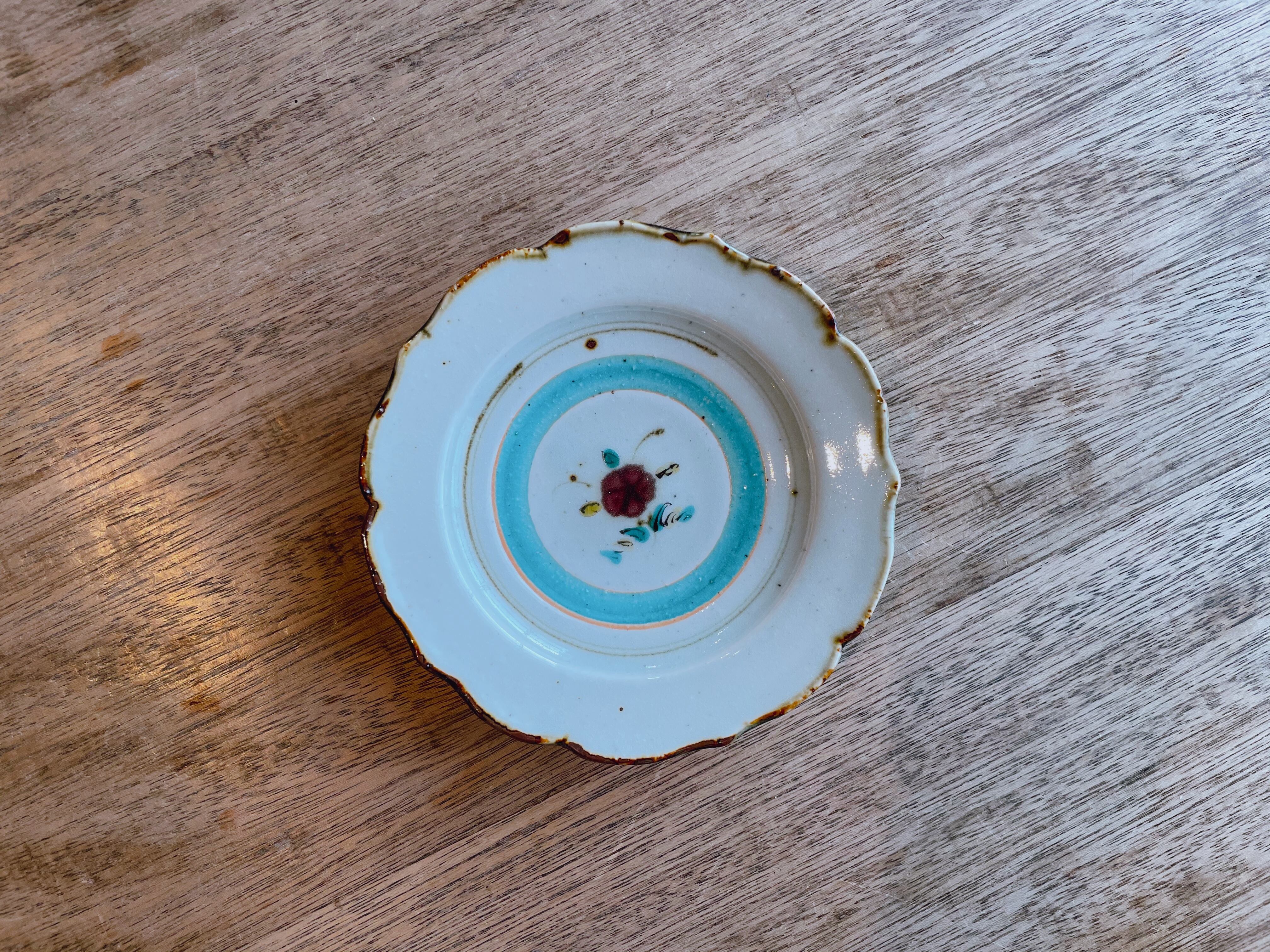 砥部焼/中田窯/5寸リム皿輪花(釉裏紅加彩/緑)④