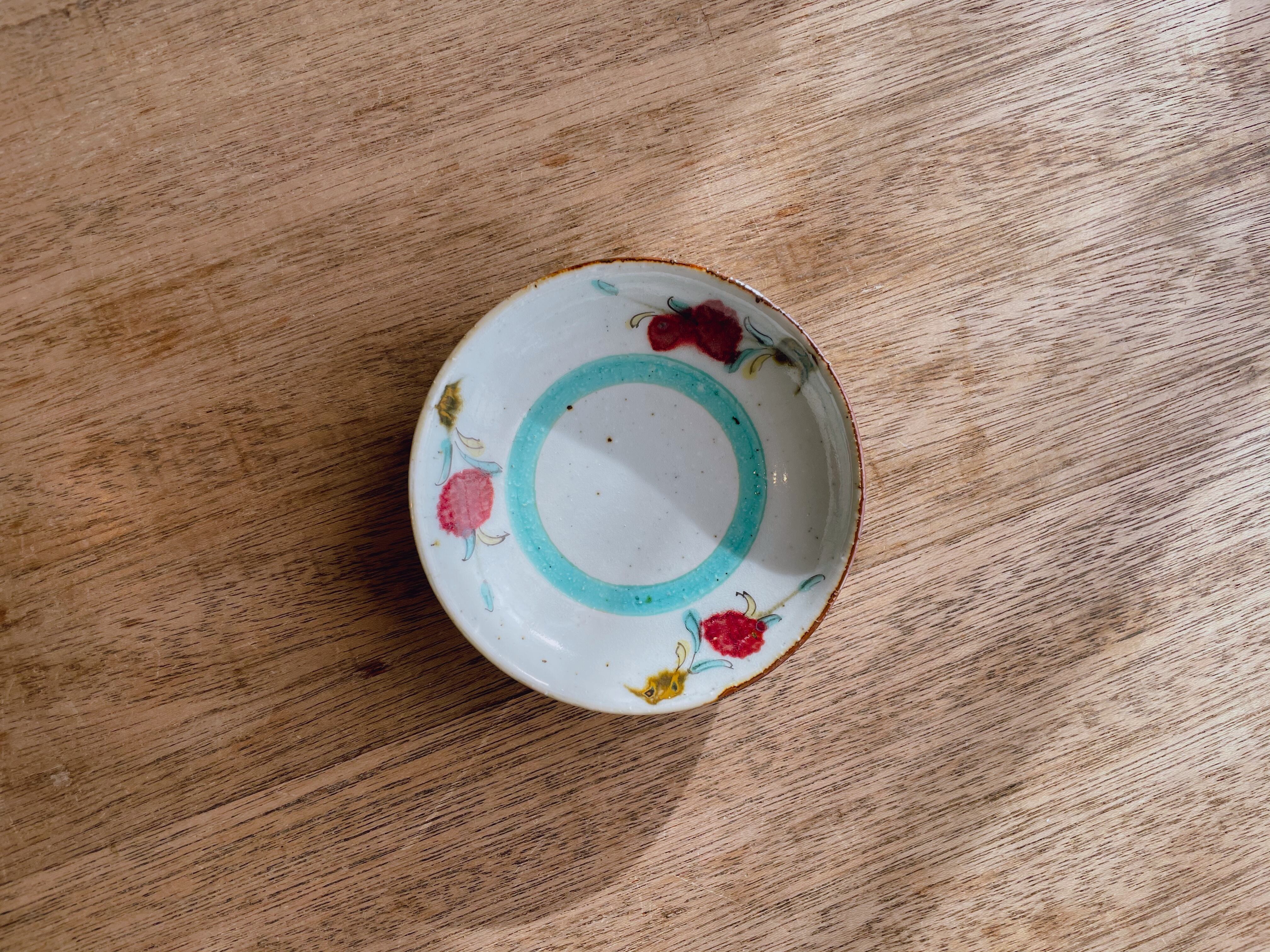 砥部焼/中田窯/4寸丸皿(釉裏紅加彩/緑)④