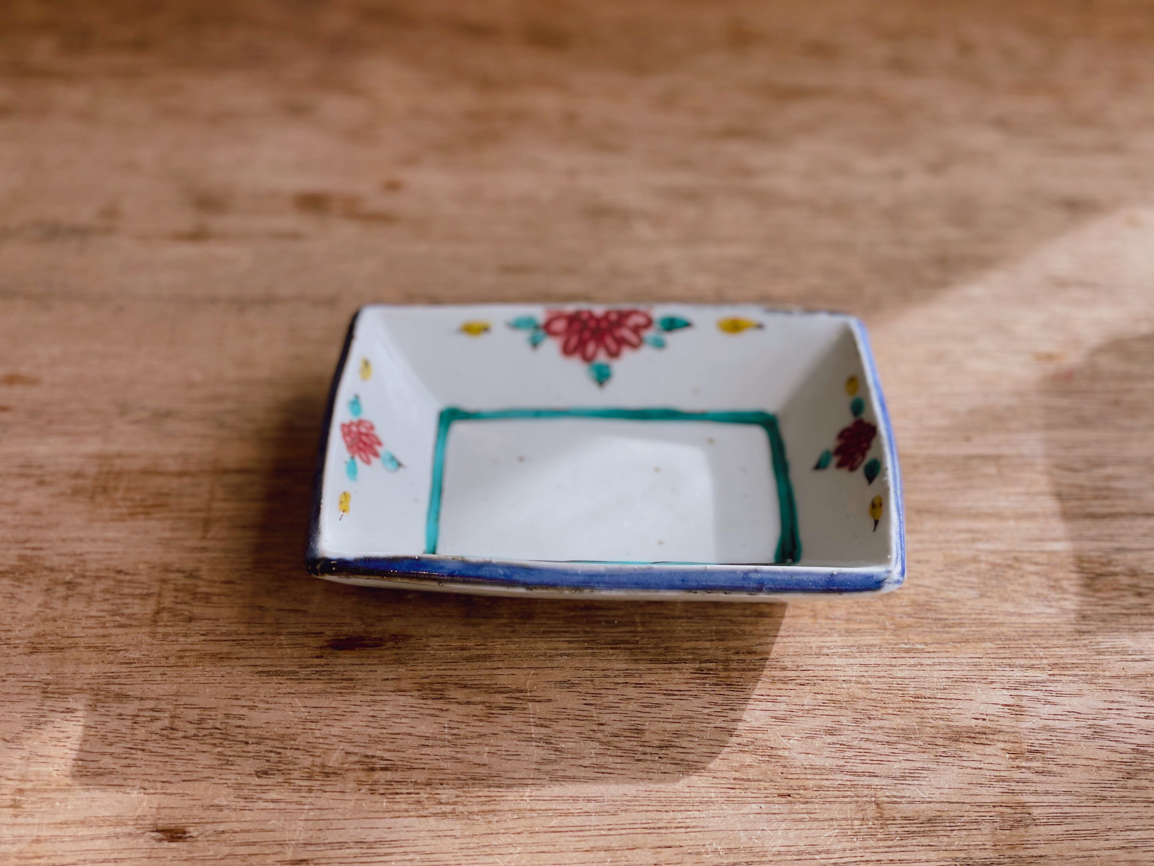 砥部焼/中田窯/5寸角皿(釉裏紅加彩)⑤