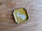 砥部焼/皐月窯/4寸たたら四角隅切皿(黄鳥)①