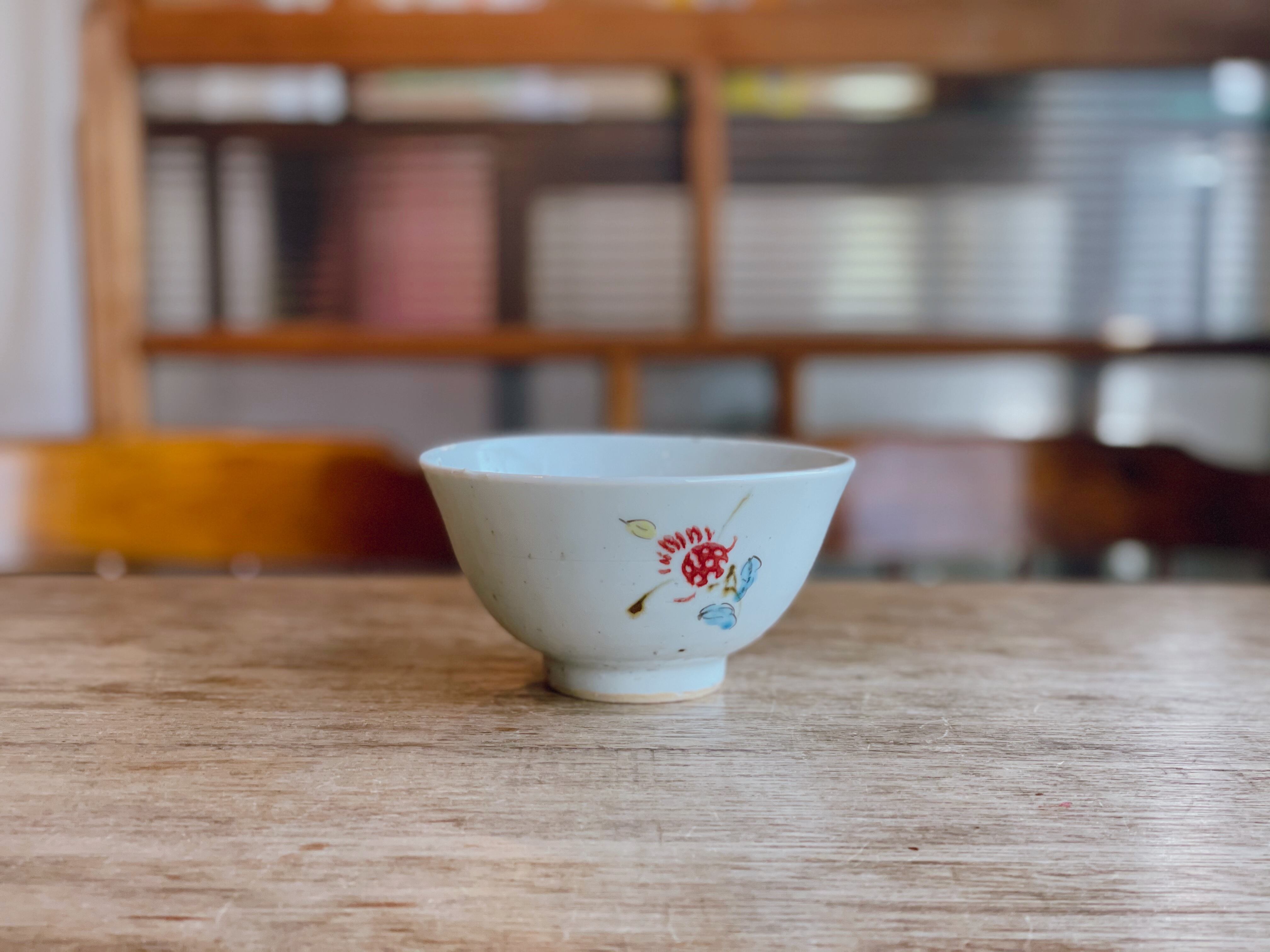 砥部焼/中田窯/飯碗(釉裏紅加彩/花文)①