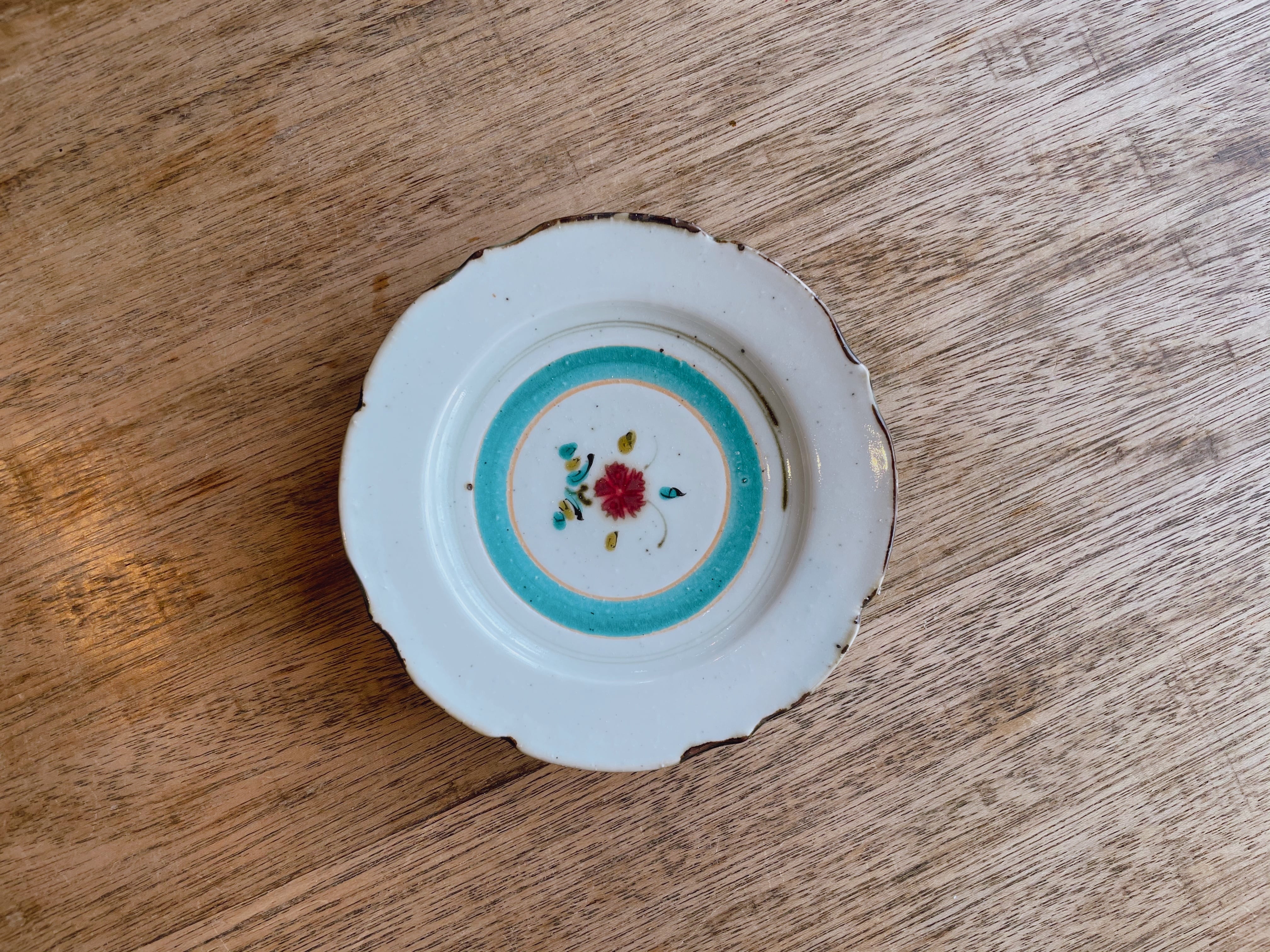 砥部焼/中田窯/5寸リム皿輪花(釉裏紅加彩/緑)②