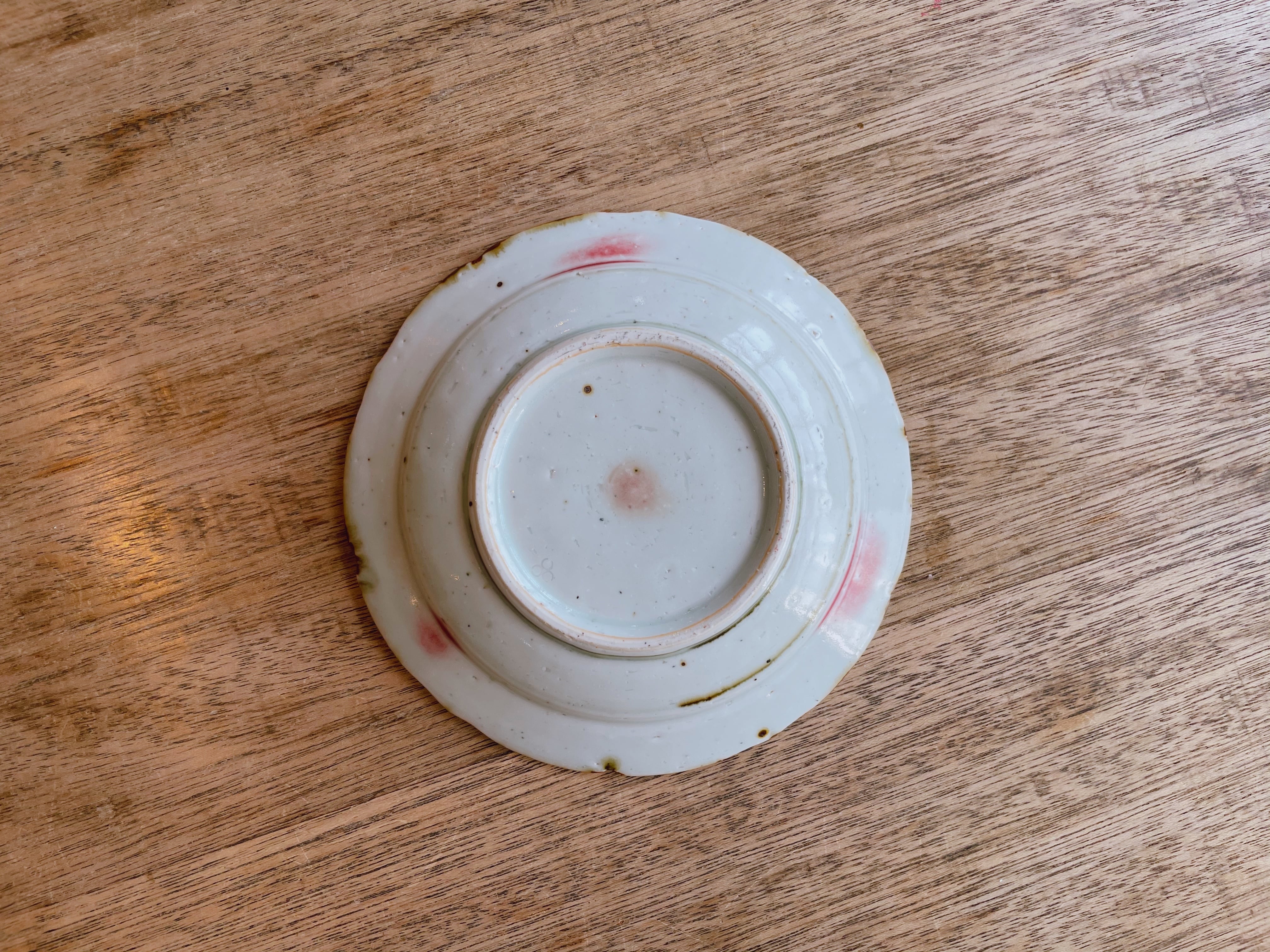 砥部焼/中田窯/6寸リム皿輪花(釉裏紅加彩/緑)