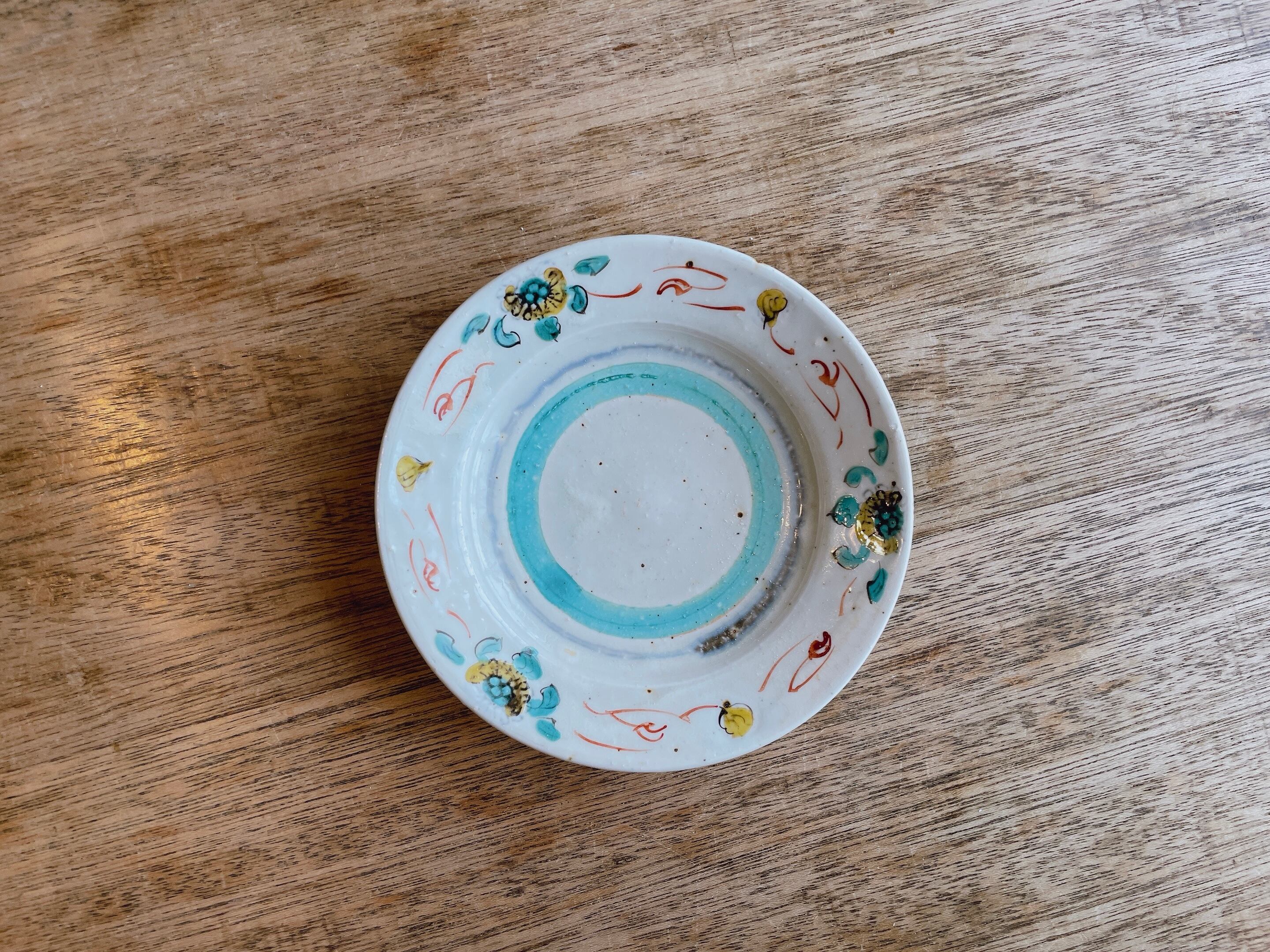 砥部焼/中田窯/5寸リム皿(灰釉上絵)緑①