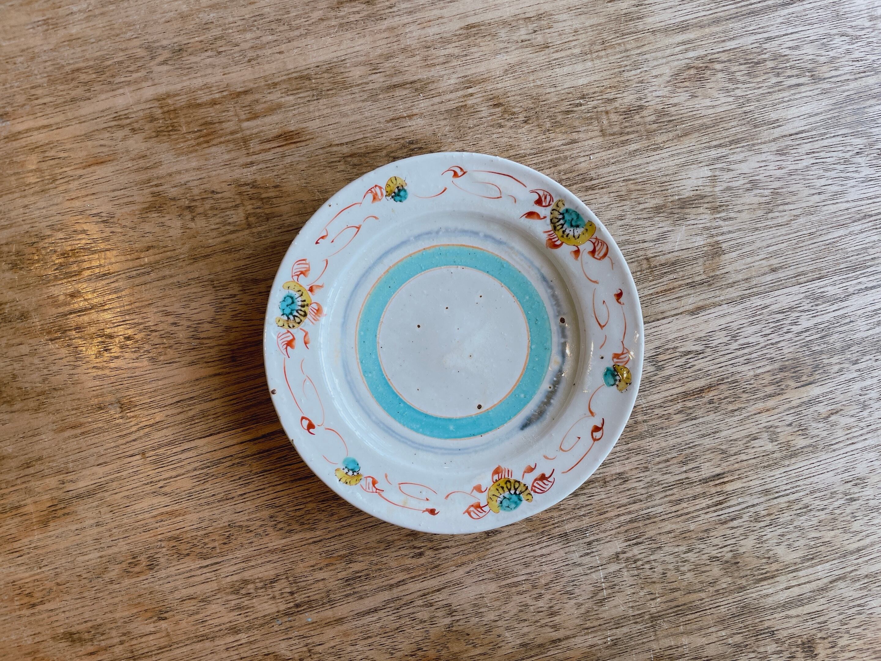 砥部焼/中田窯/5寸リム皿(灰釉上絵)緑③
