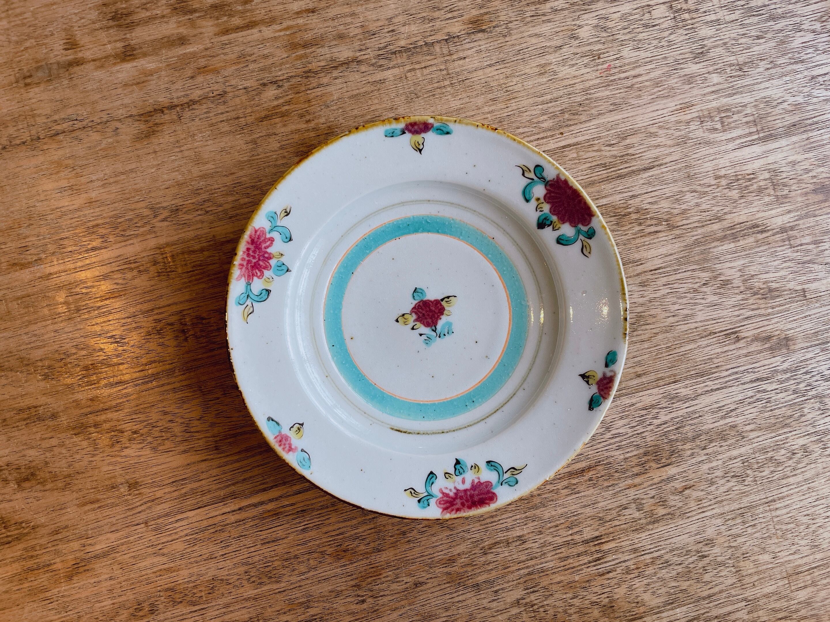 砥部焼/中田窯/7寸リム皿(釉裏紅加彩)緑④