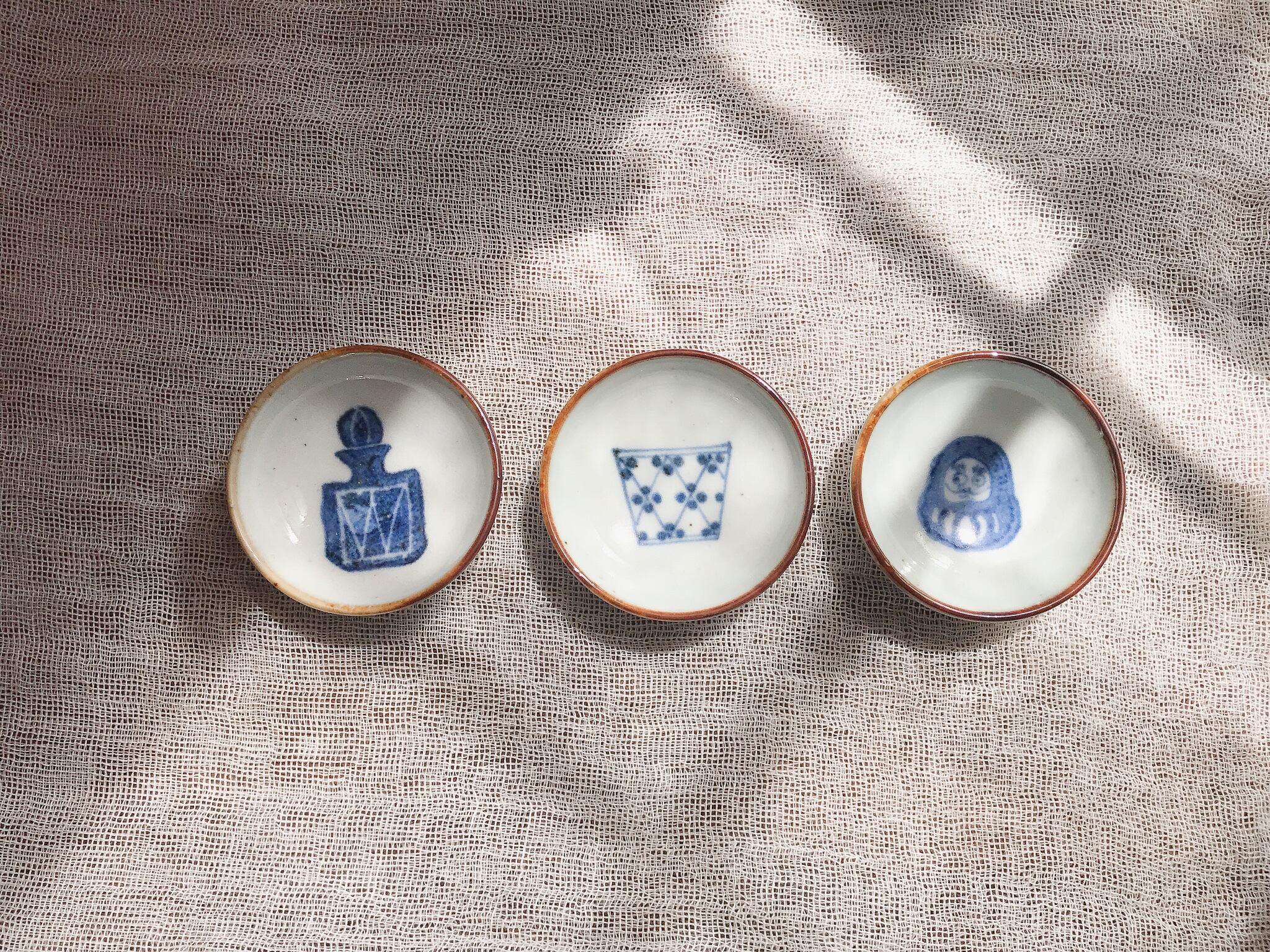 砥部焼/皐月窯/豆皿(小瓶・そばちょこ梅文・だるま)