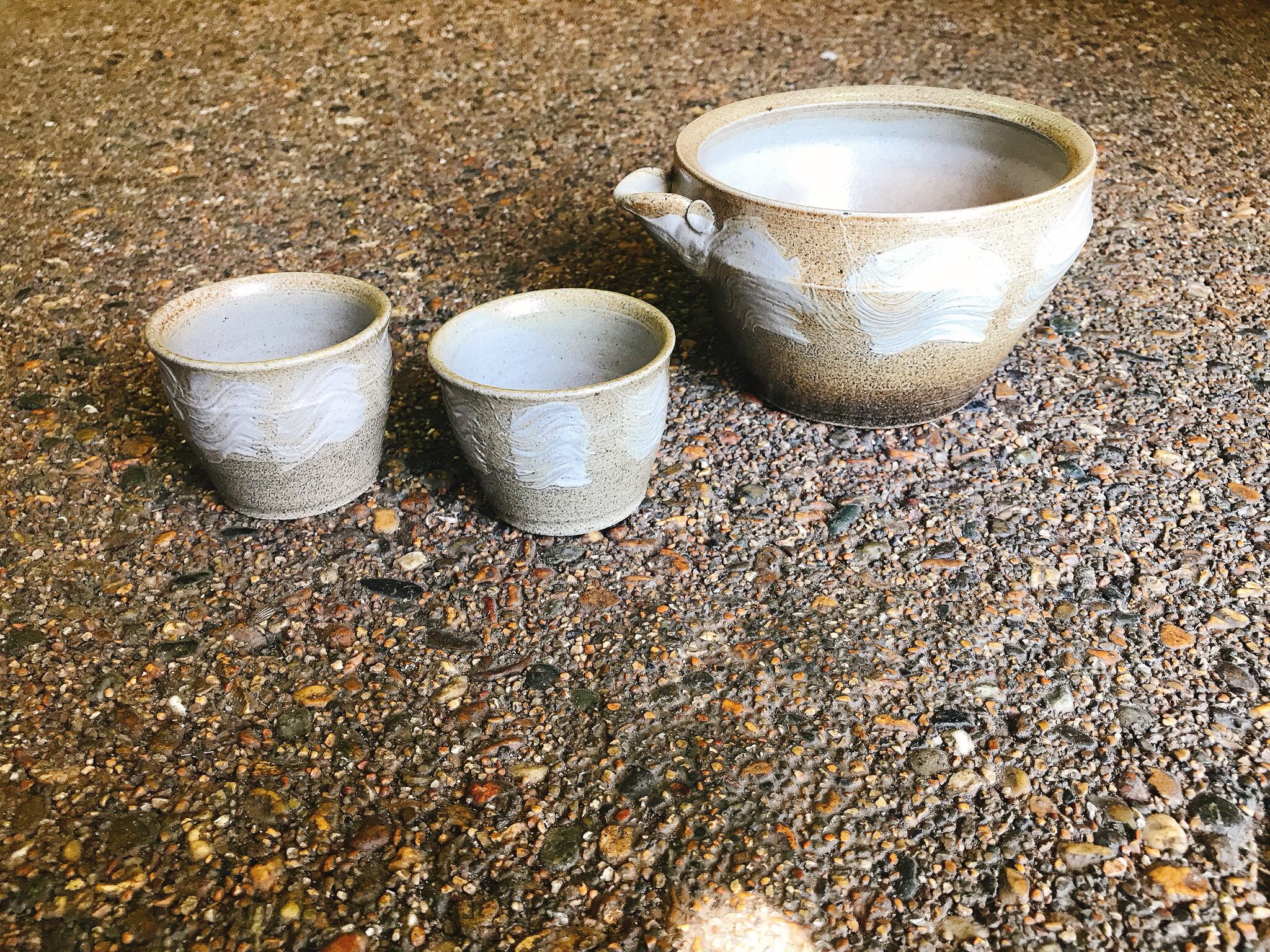 流れるような刷毛目が心地よく、塩釉独特の焼成に、味わいのある逸品です。