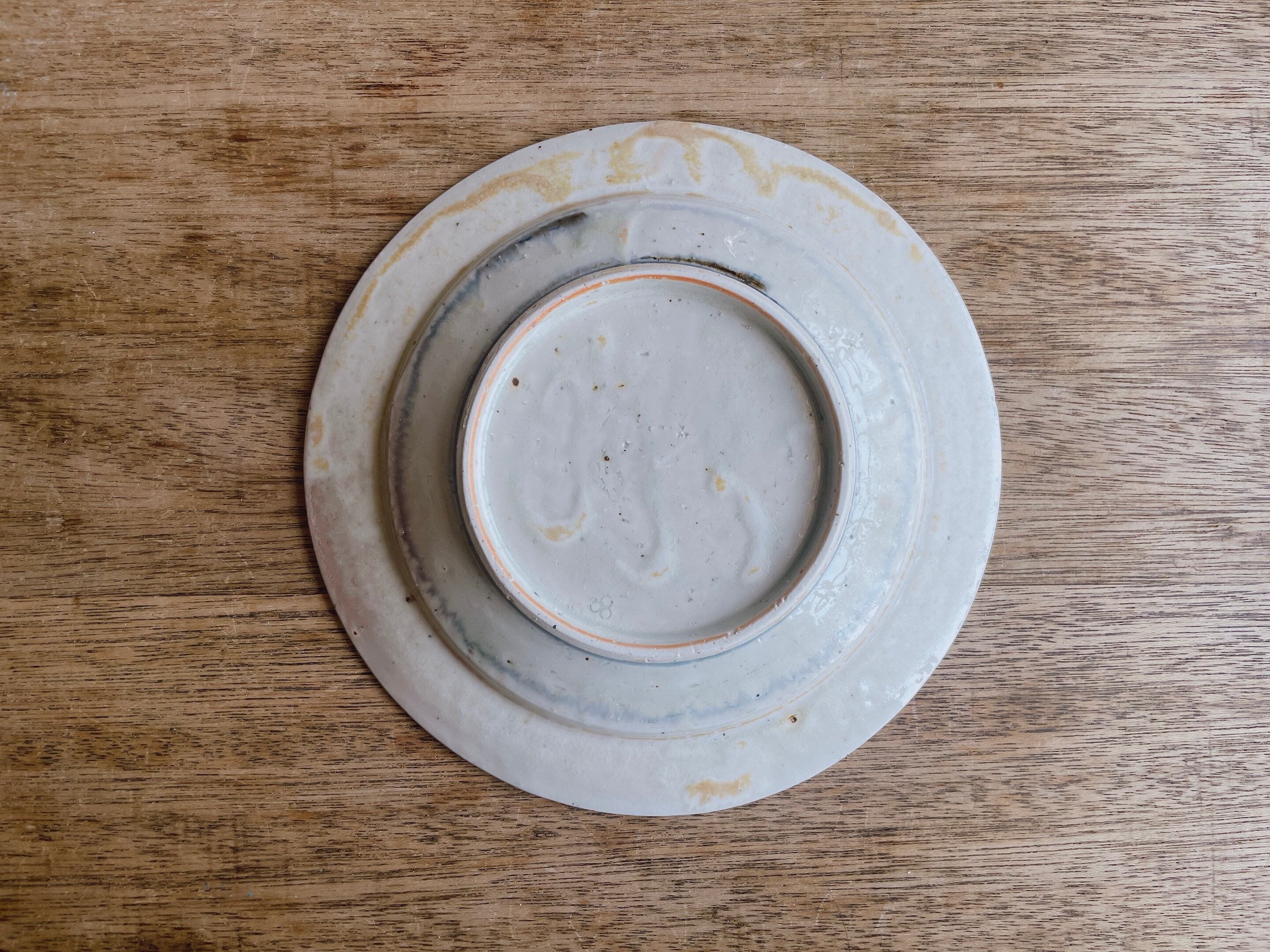 砥部焼/中田窯/7寸リム皿(灰釉上絵//鎬)ブルー①