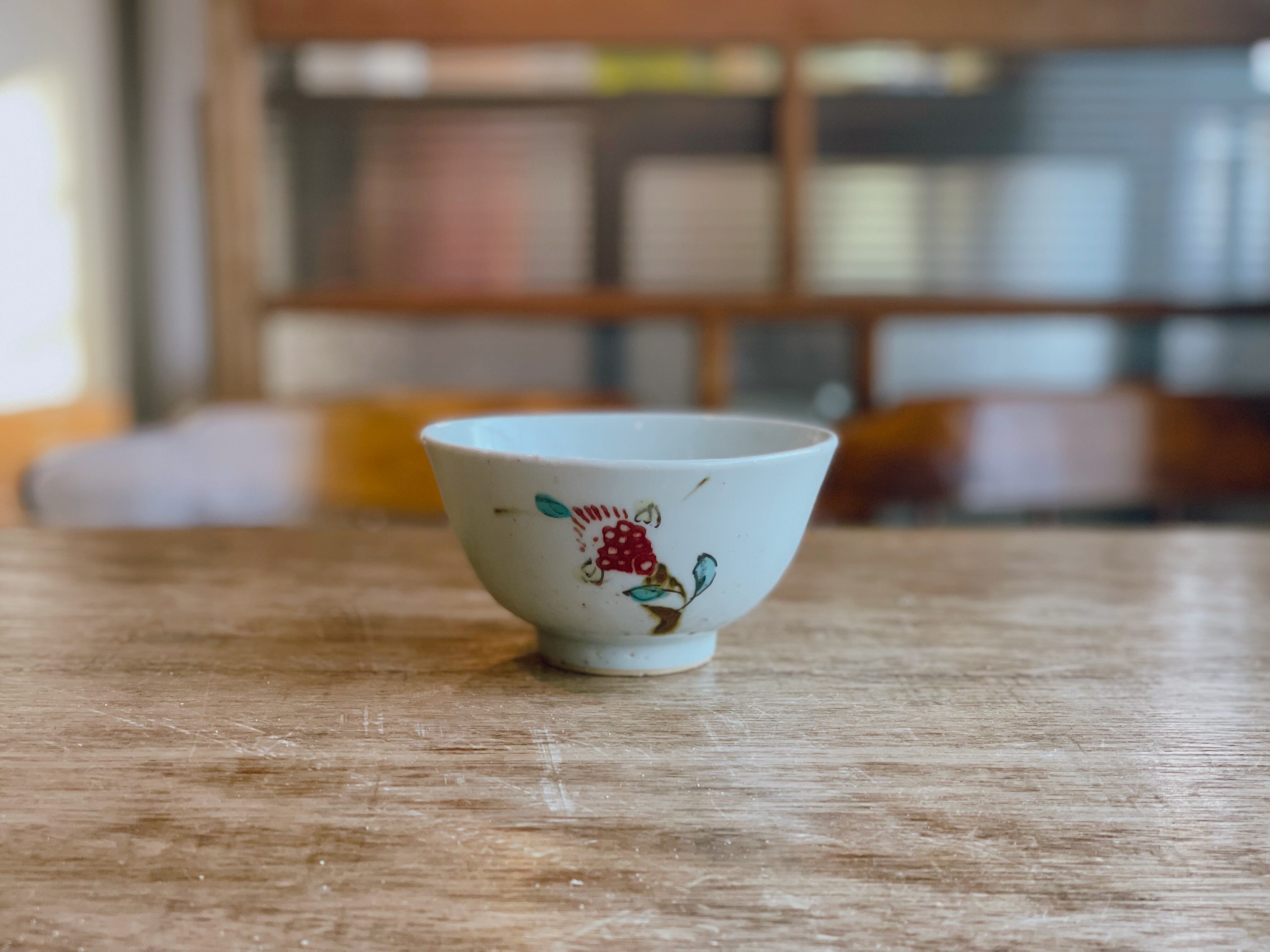 砥部焼/中田窯/飯碗(釉裏紅加彩)①