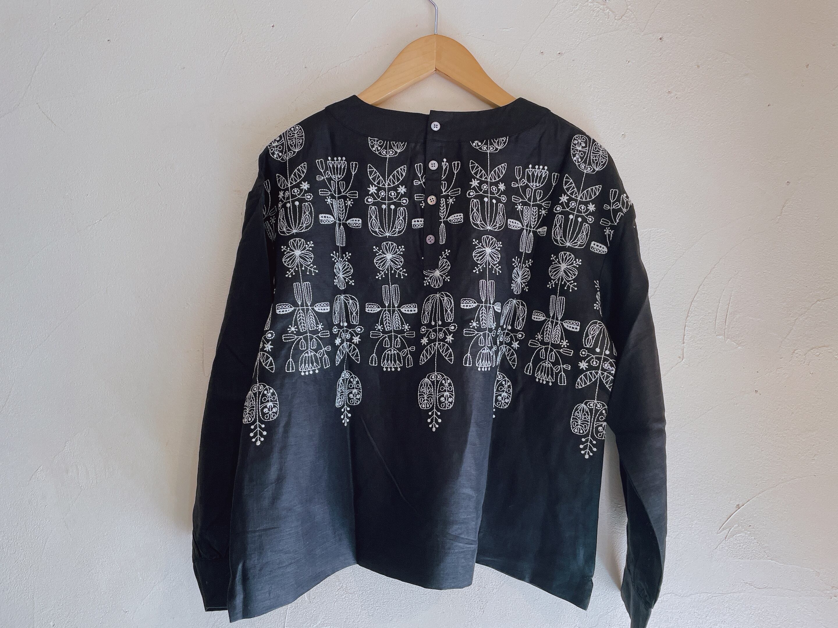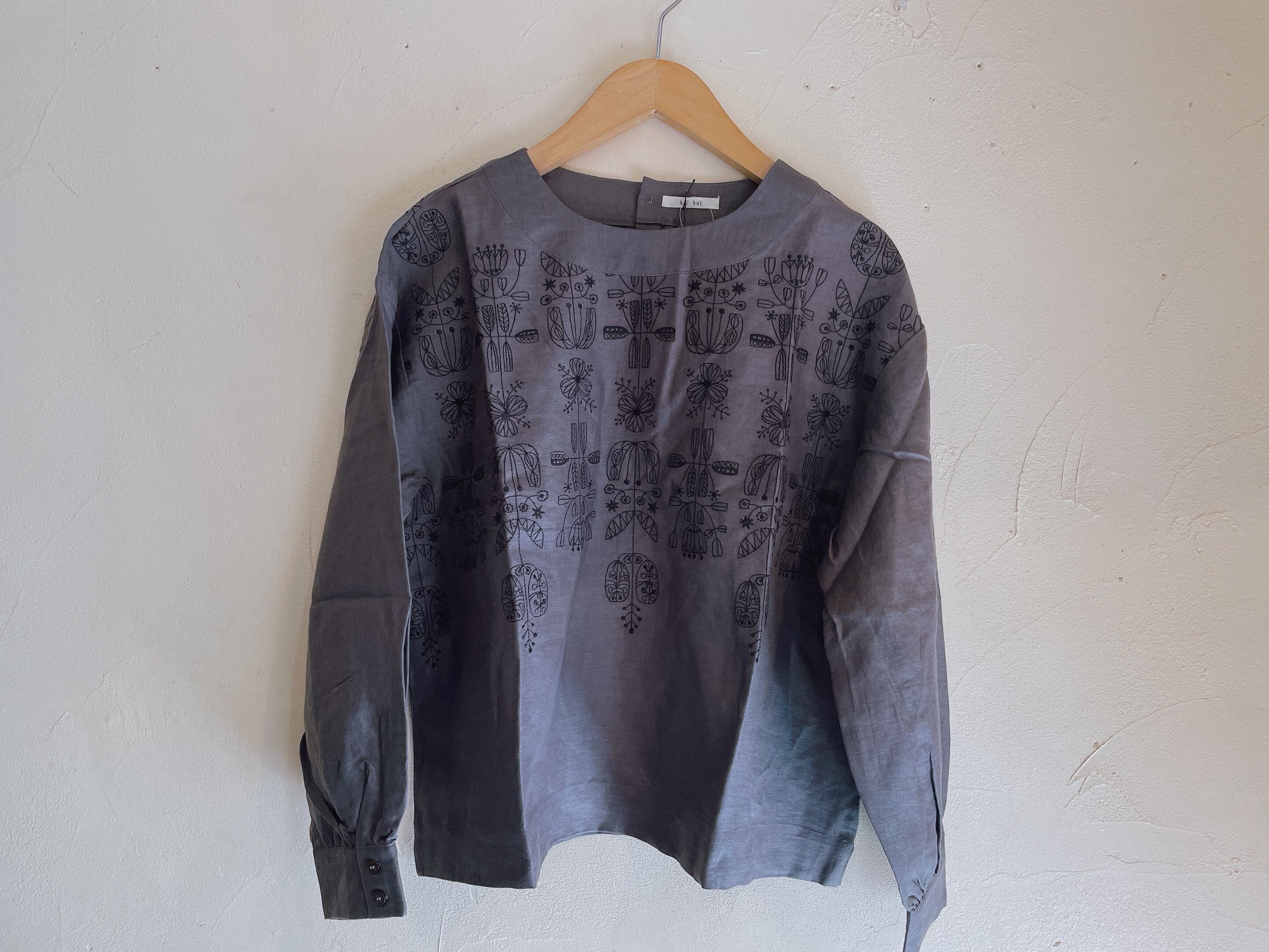 bul bul/リネンフォークフラワー刺繍クルーネックプルオーバー