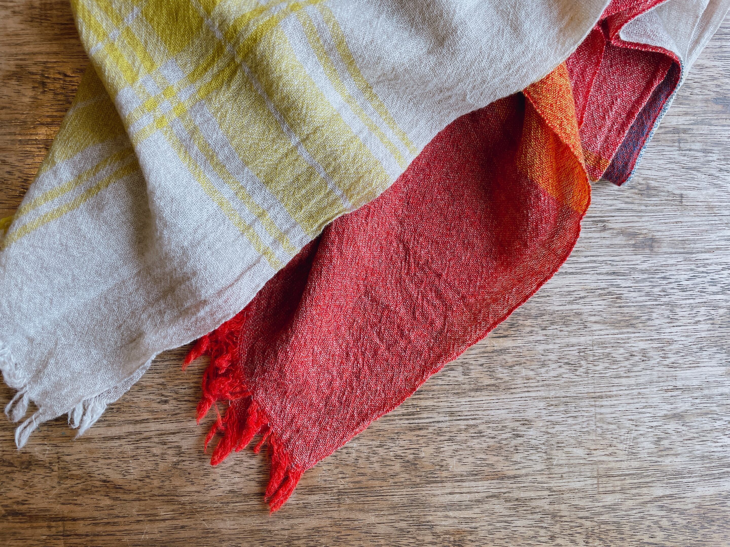 スポンジのように膨らみ感があるソフトな風合いの薄手のストール。