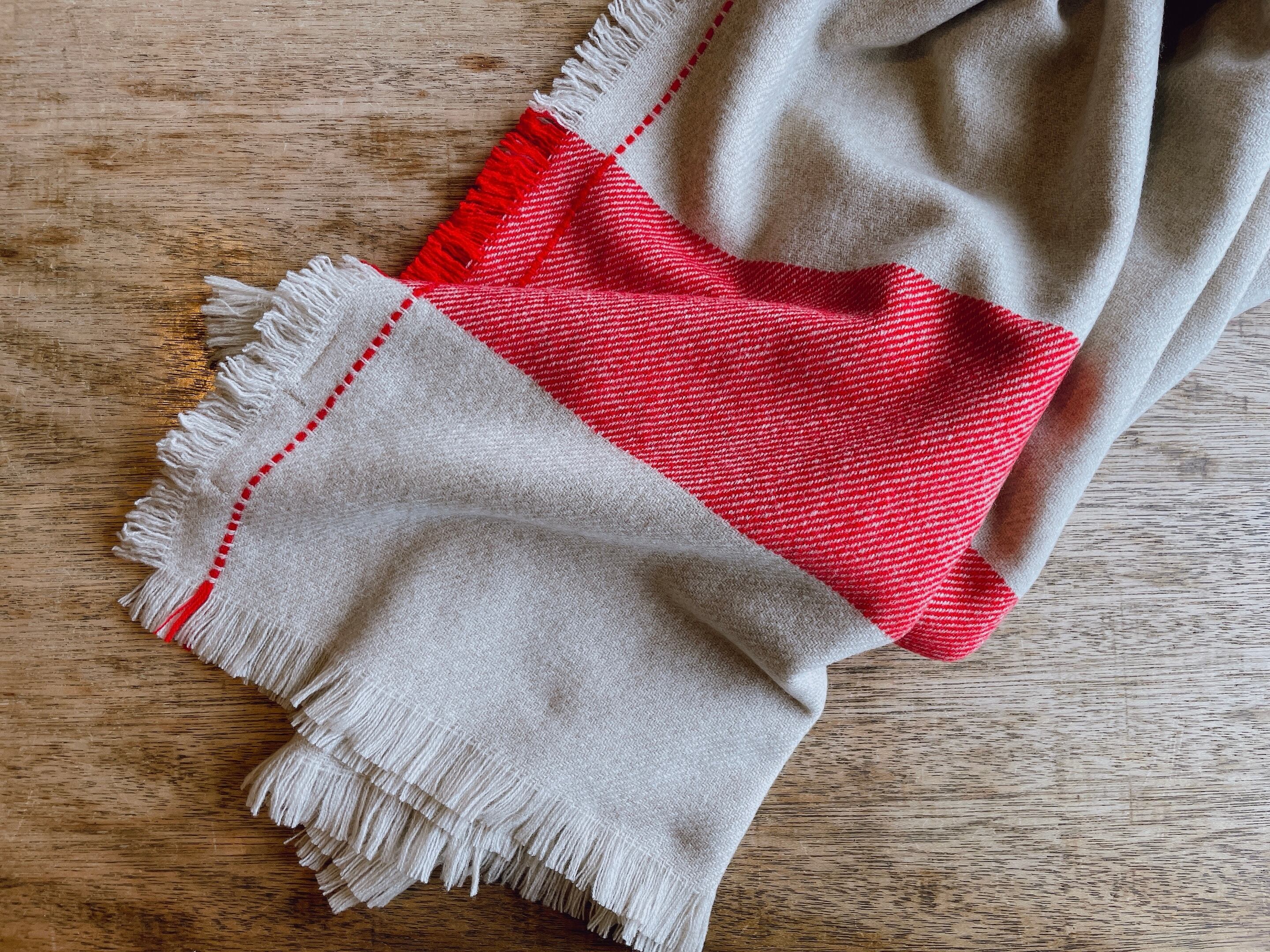 カシミヤに匹敵する極細のメリノウールを使用した軽くソフトなストールです。