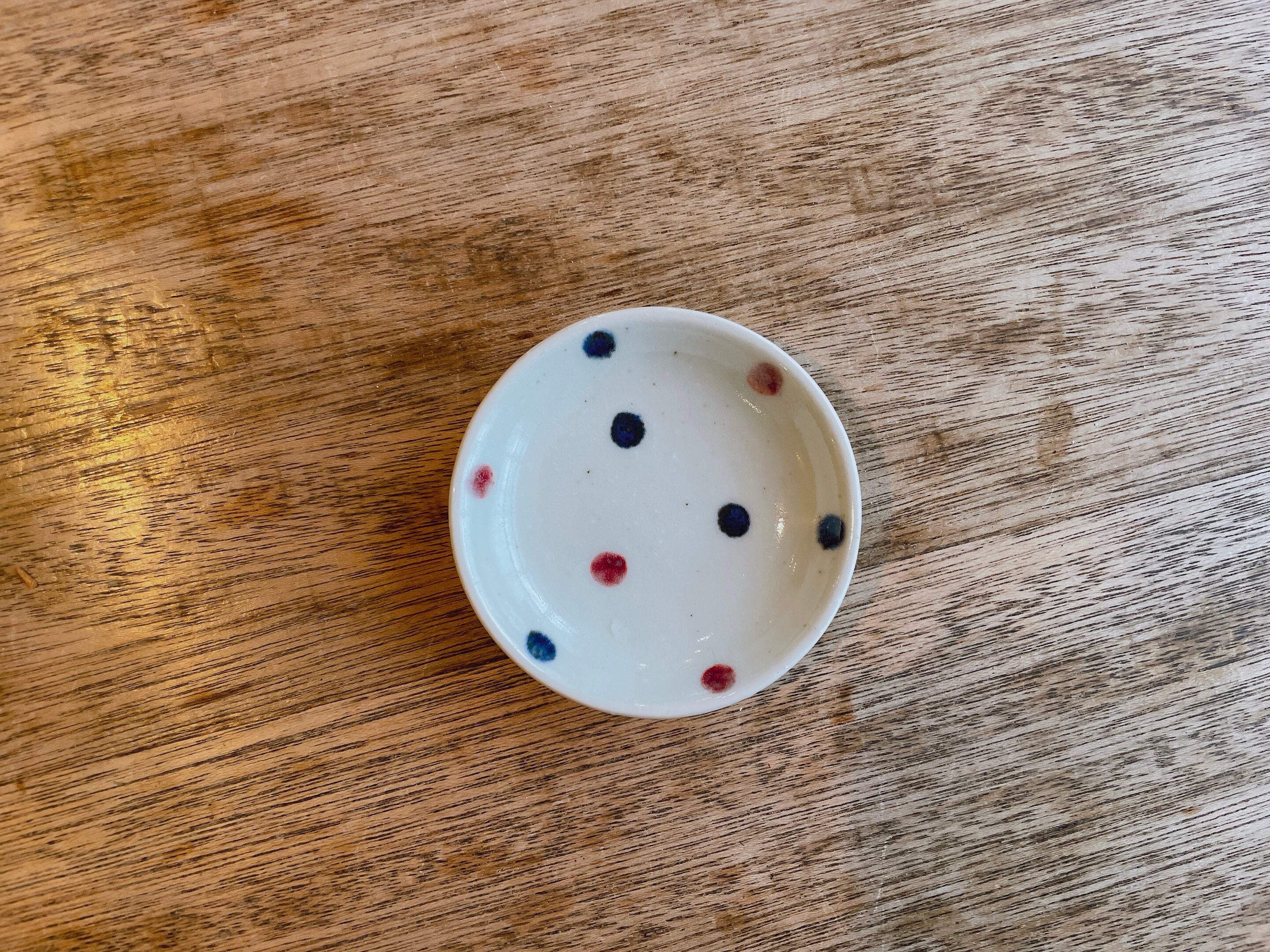 砥部焼/中田窯/3寸丸皿(イロ水玉)①