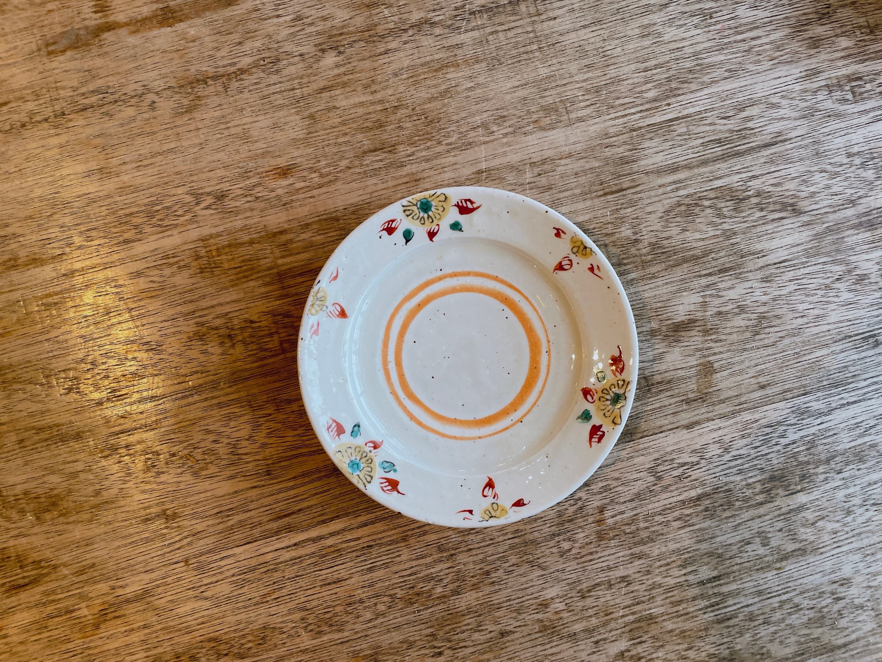 砥部焼/中田窯/5寸リム皿(灰釉加彩/オレンジ)A