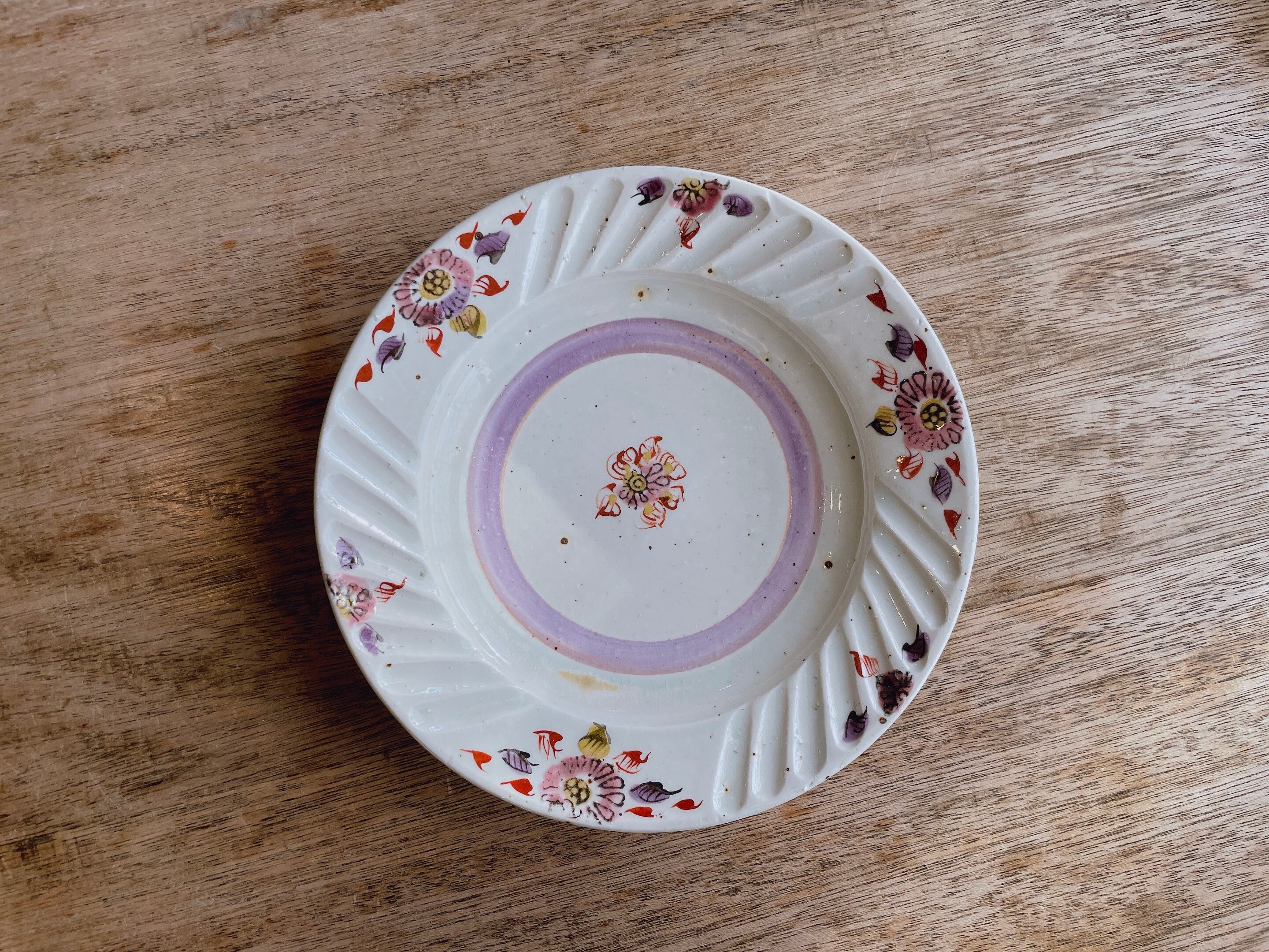 砥部焼/中田窯7寸リム皿(灰釉加彩/鎬)薄紫③