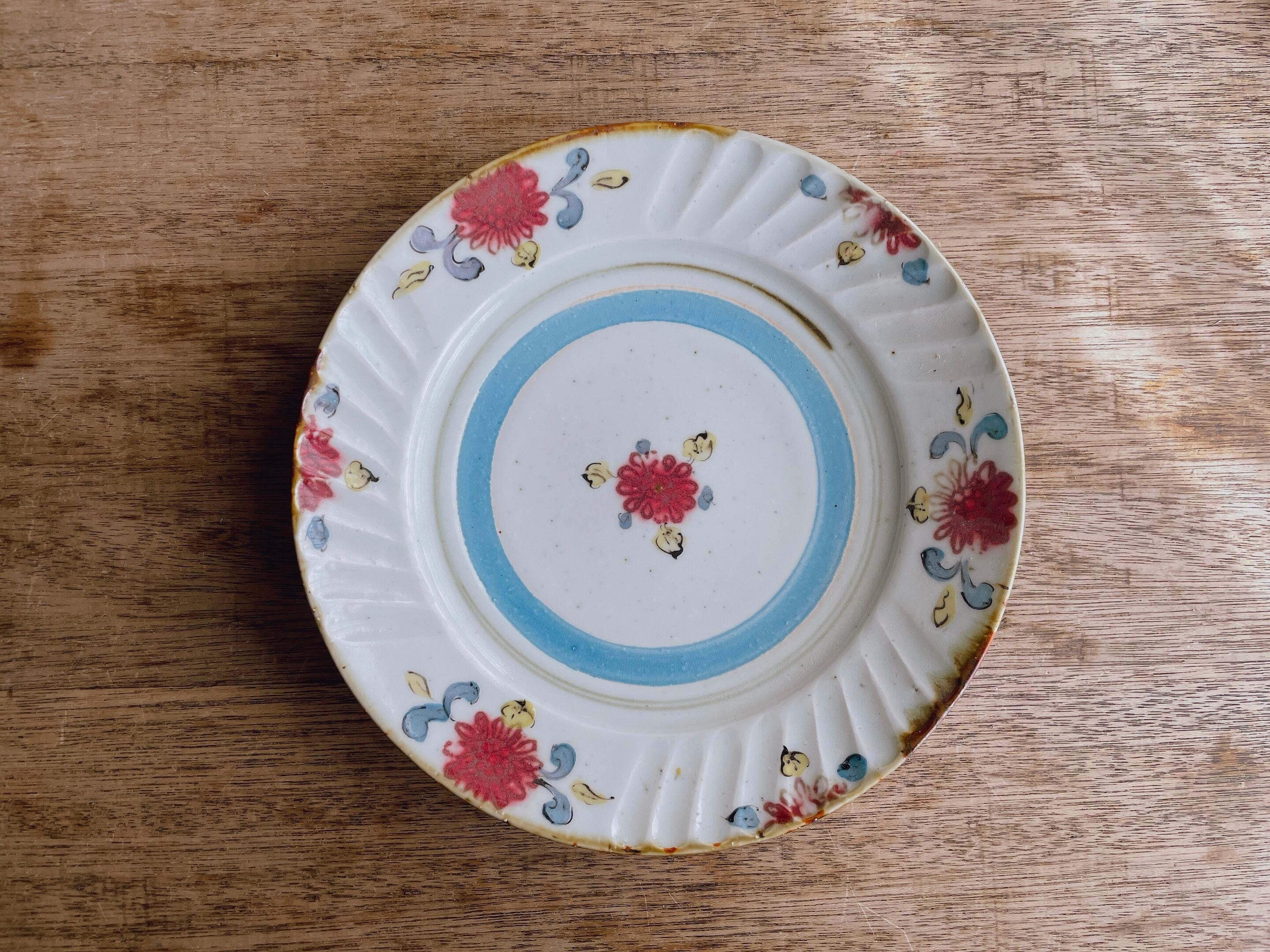 砥部焼/中田窯/8寸リム皿(釉裏紅加彩/鎬)ブルー
