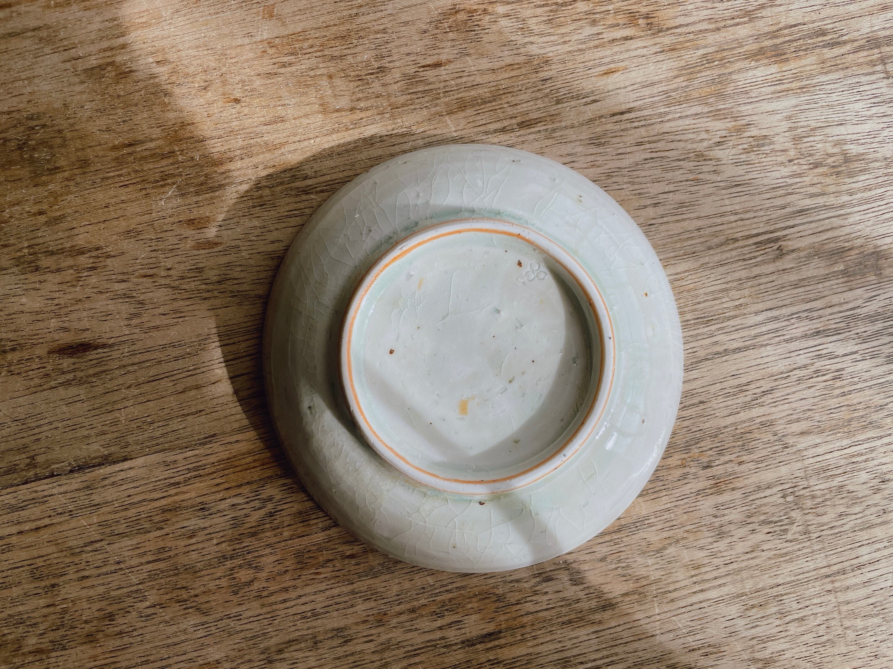 砥部焼/中田窯/4寸丸皿(灰釉加彩/オレンジ)B