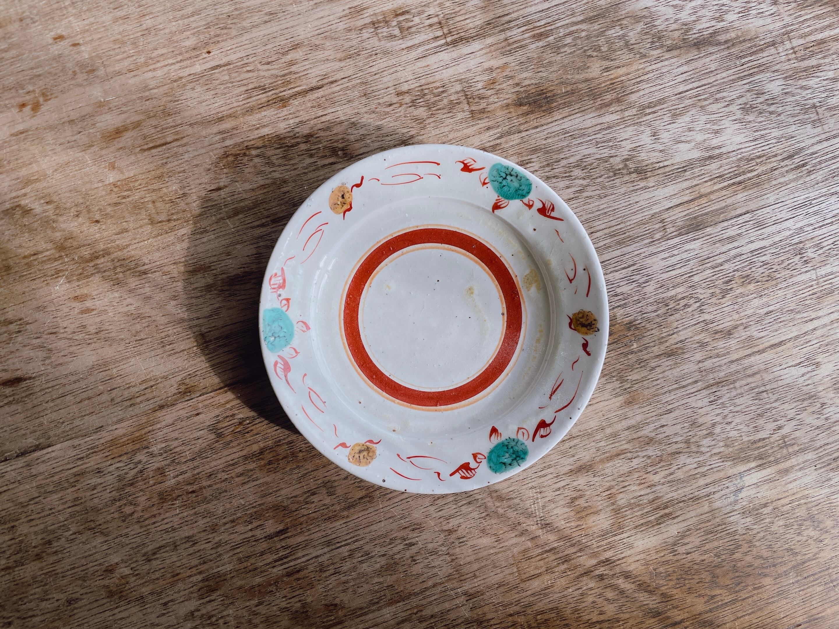 砥部焼/中田窯/5寸リム皿(灰釉加彩/レンガ)④
