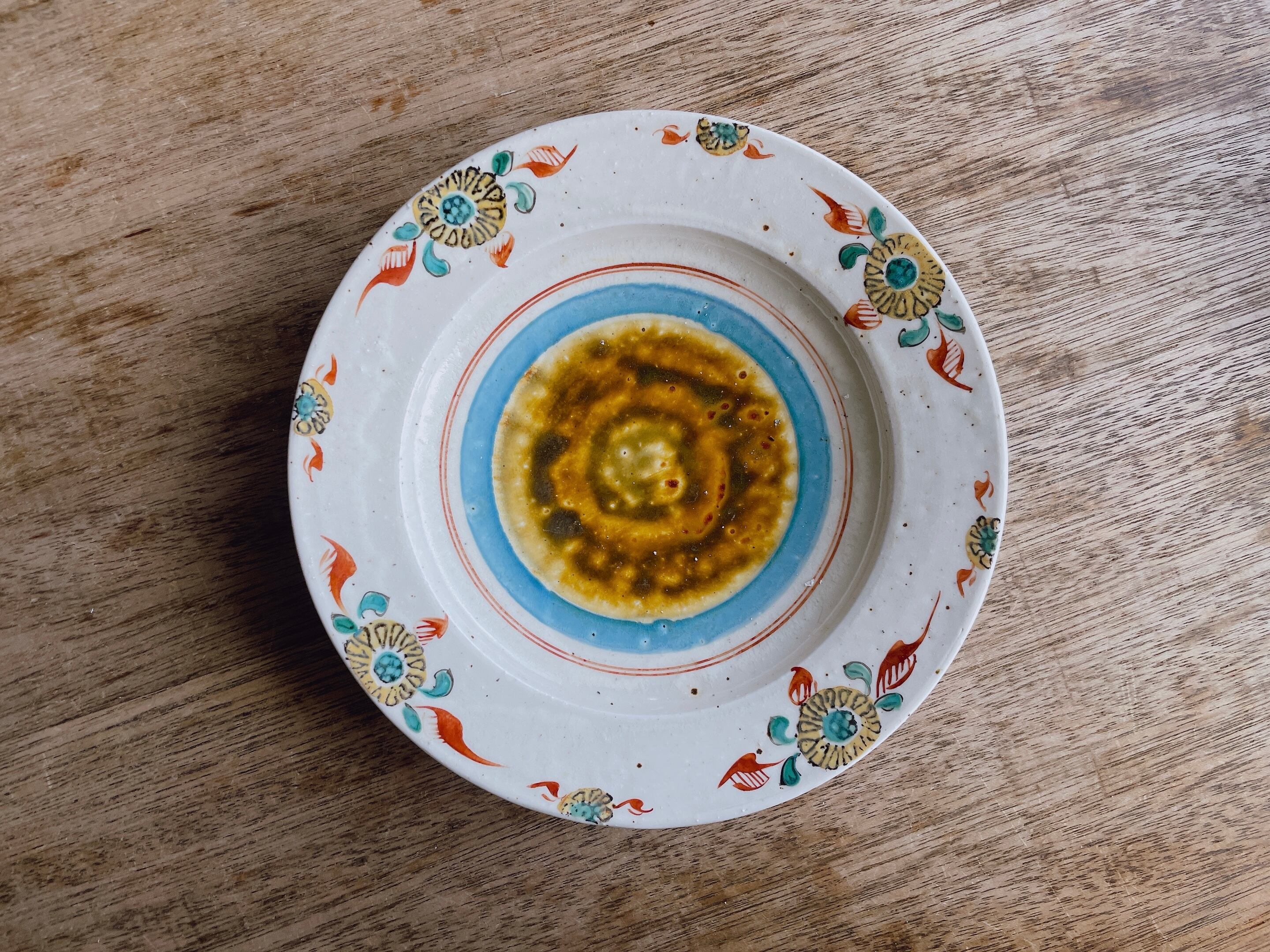 砥部焼/中田窯/7寸リム皿(灰釉加彩)ブルー