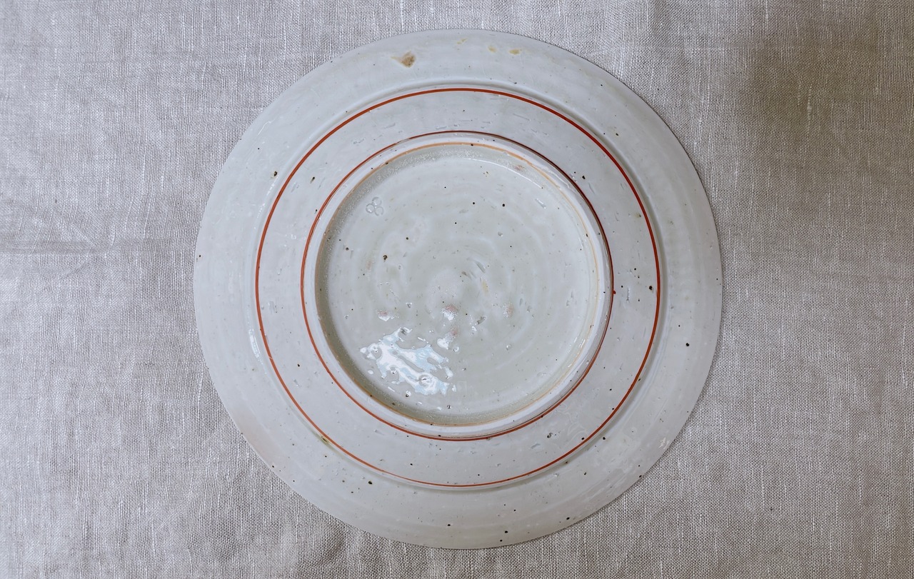 砥部焼/中田窯/7寸リム皿(灰釉加彩/鎬)レンガ③