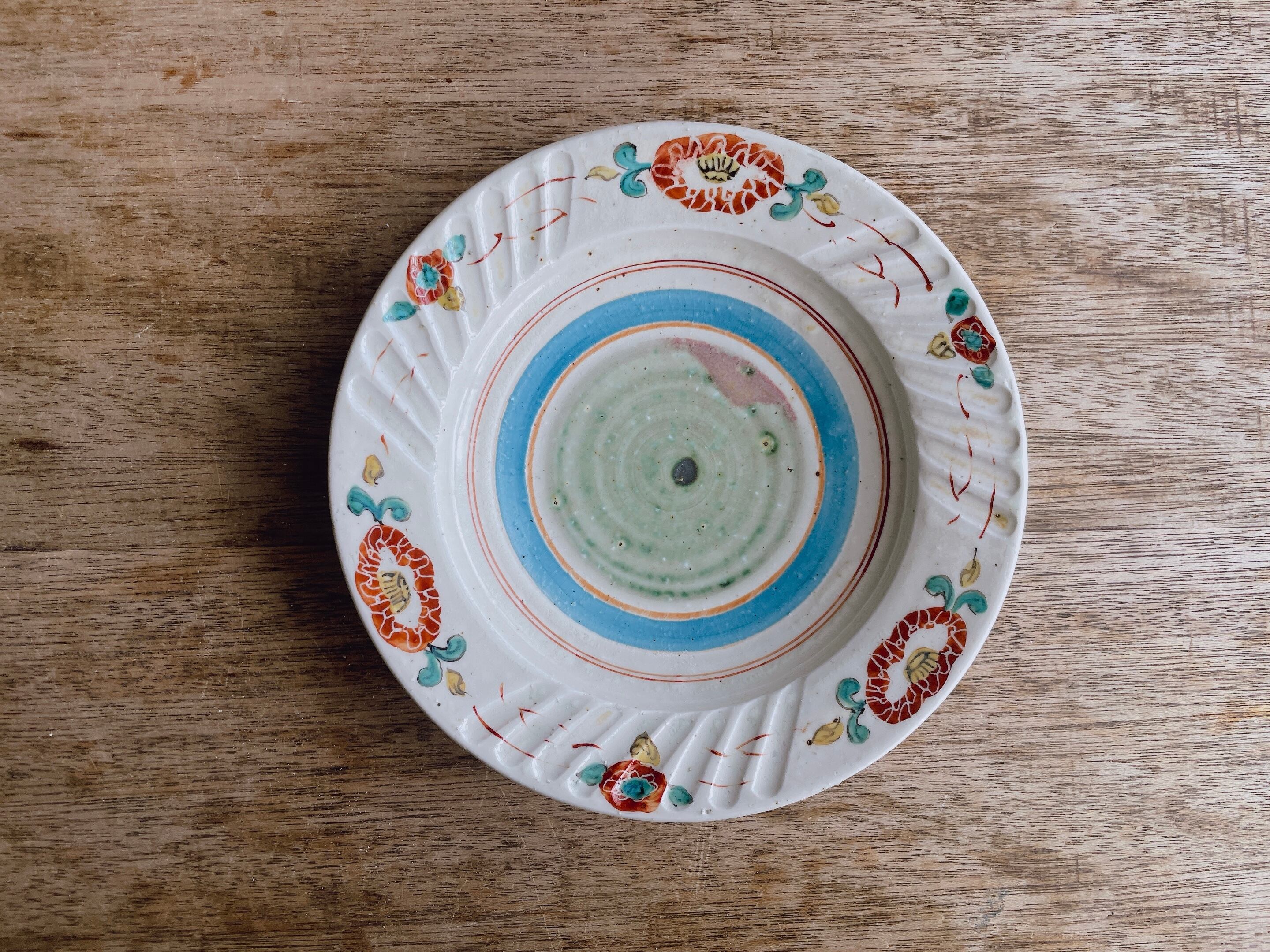 砥部焼/中田窯/7寸リム皿(灰釉加彩/鎬)ブルー③