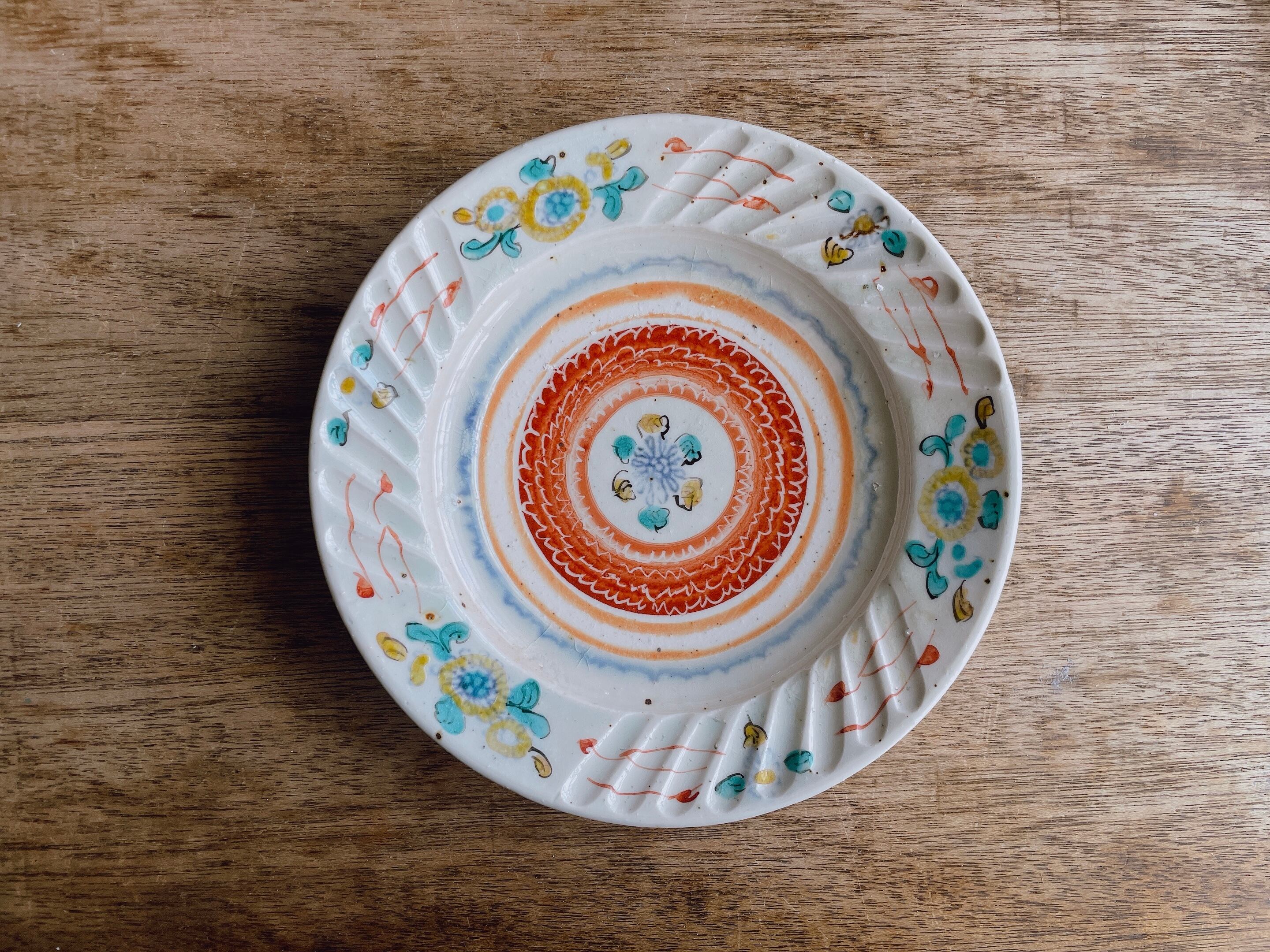 砥部焼/中田窯/7寸リム皿(灰釉加彩/鎬)オレンジ③