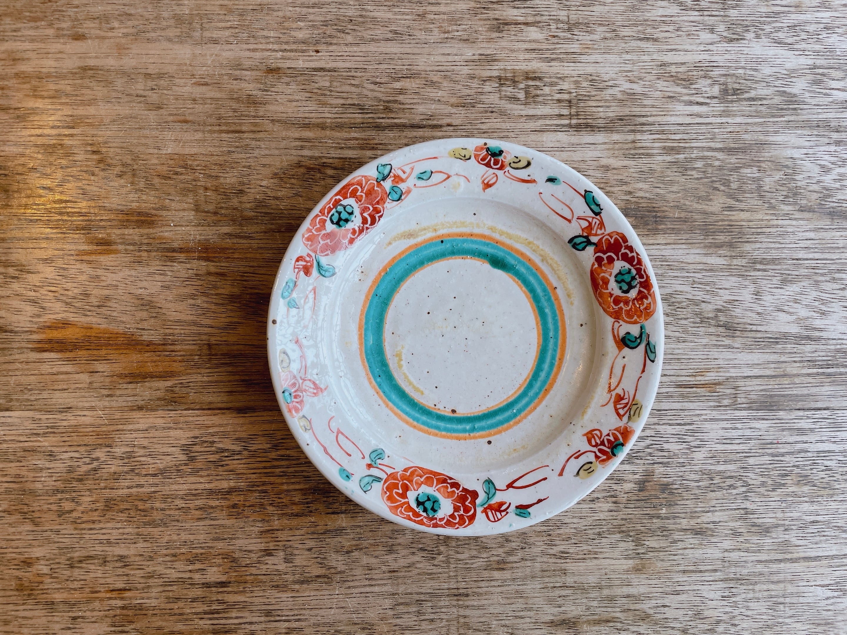 砥部焼/中田窯/5寸リム皿(灰釉加彩)A-7