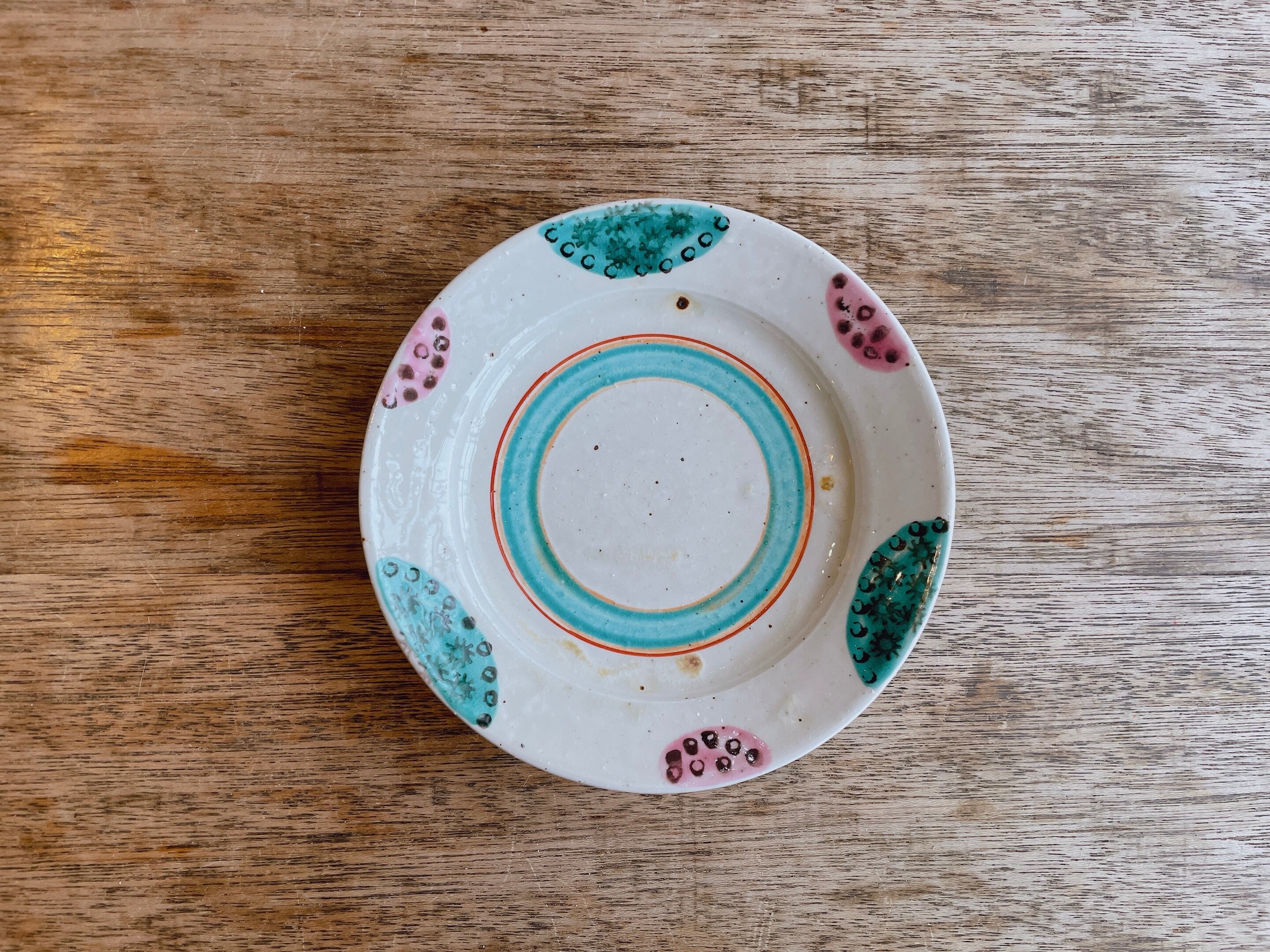 砥部焼/中田窯/5寸リム皿(灰釉加彩)A-8