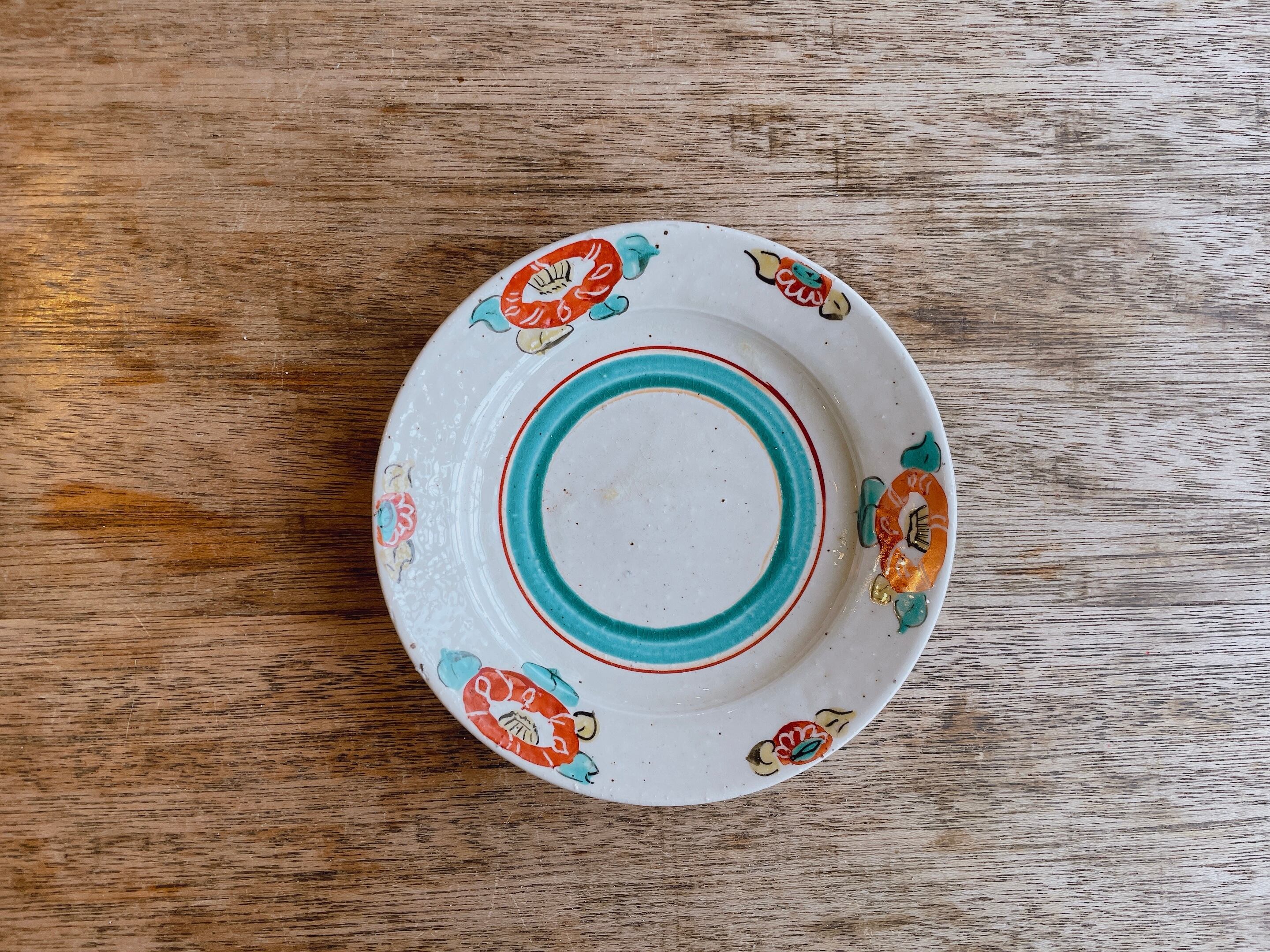 砥部焼/中田窯/5寸リム皿(灰釉加彩)A-9