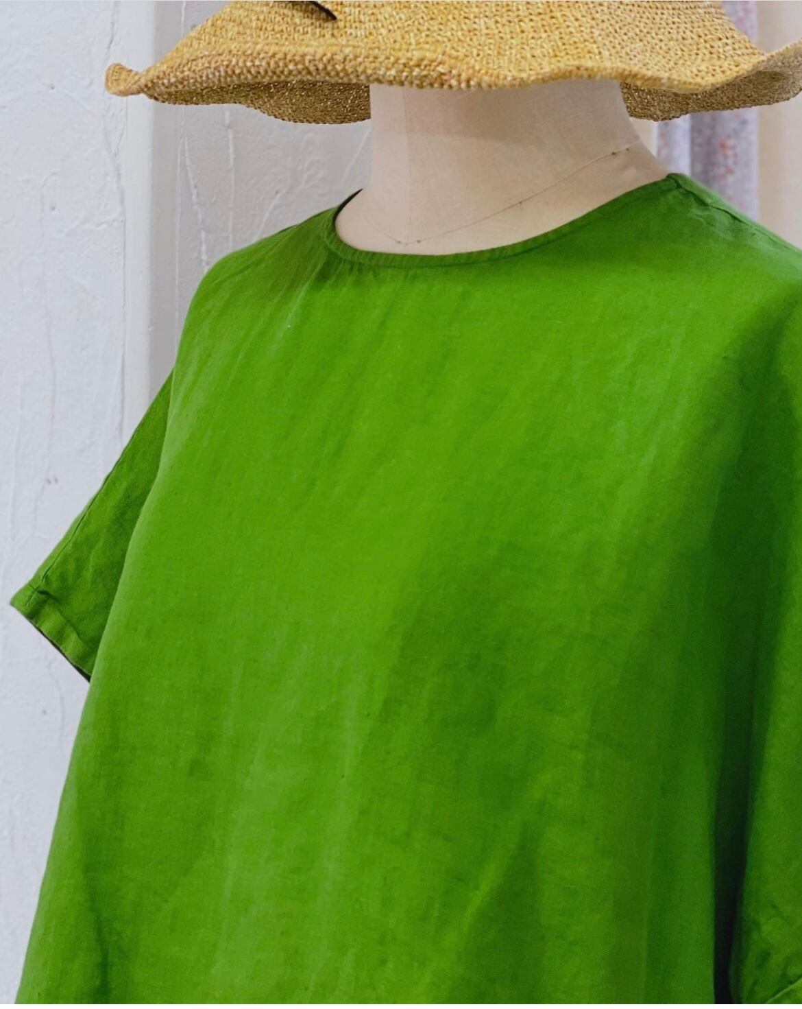 身幅がたっぷりとした5分袖Tシャツのようなデザイン。