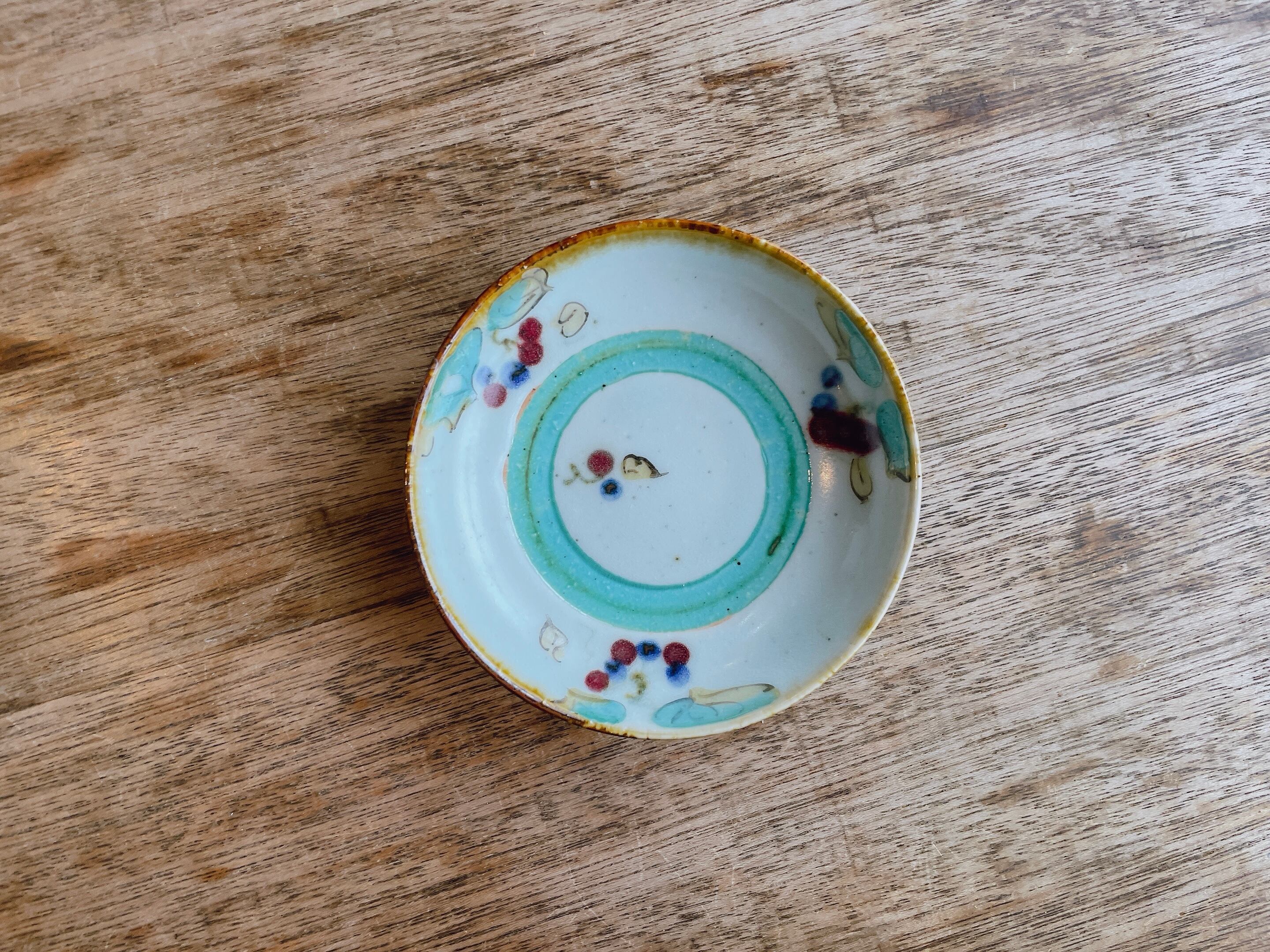 砥部焼/中田窯/4寸丸皿(釉裏紅加彩/緑)⑦